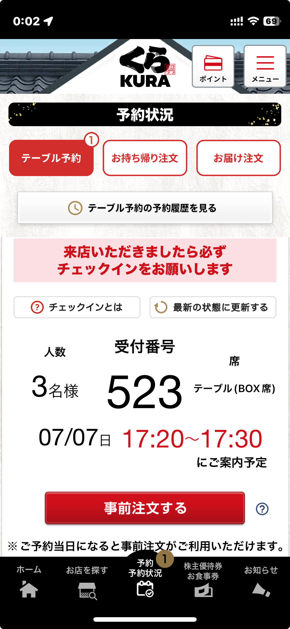 쿠라스시의 좋은 점은 당일날 시간 예약이 가능하다는 점인데