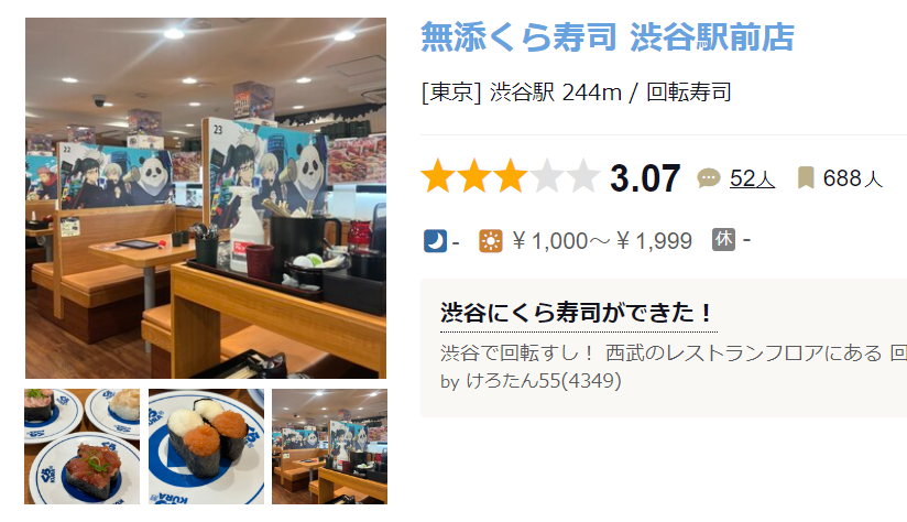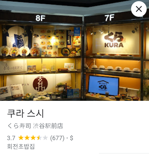 구글 평점은 3.6점.. Kura Sushi Nishi-Shinjuku · 일본 〒160-0023 Tokyo, Shinjuku City, Nishishinjuku, 7 Chome−1−7 新宿ダイカンプラザ ★★★★☆ · 회전초밥집 www.google.com 타베로그가 3.07 의외로 일식에 후한..