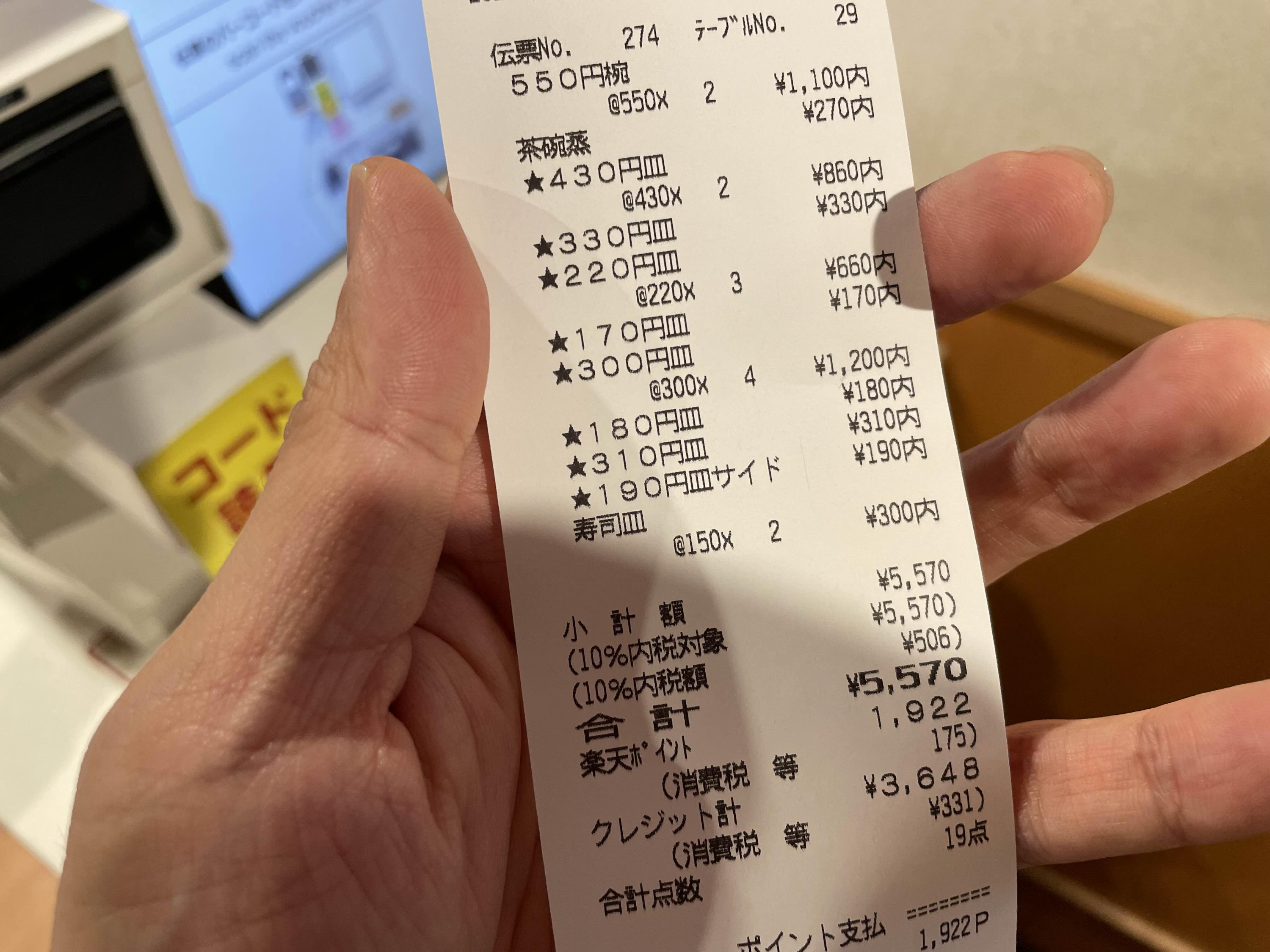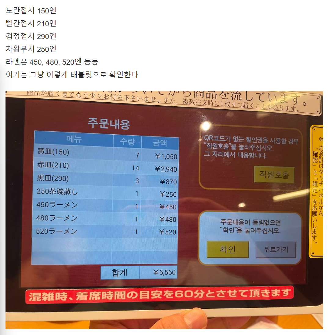 그러다보니 둘이서 비슷하게 먹어도 쿠라스시가 5천엔이 넘는 경우가 허다하고