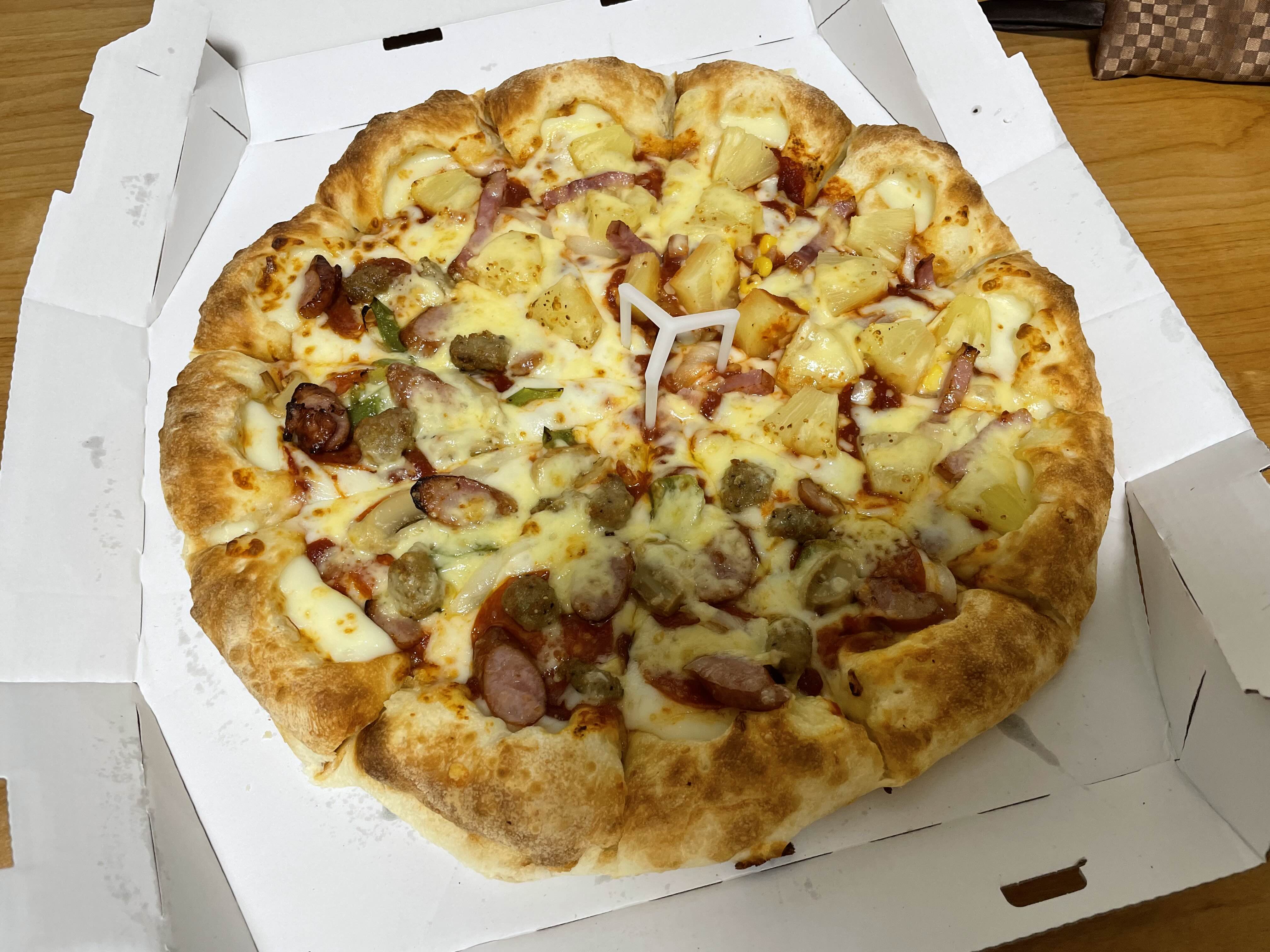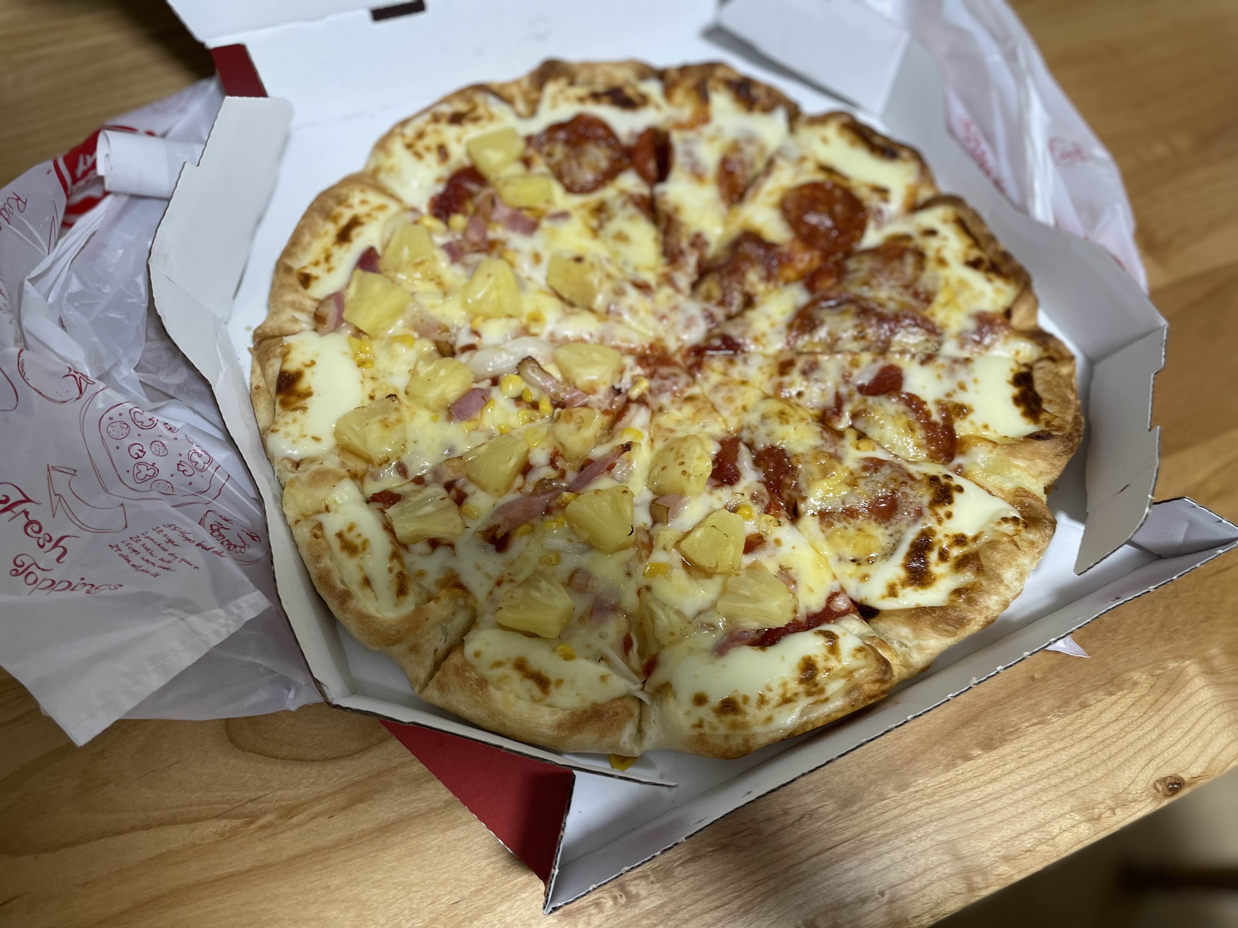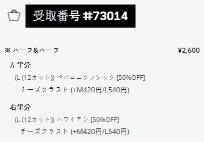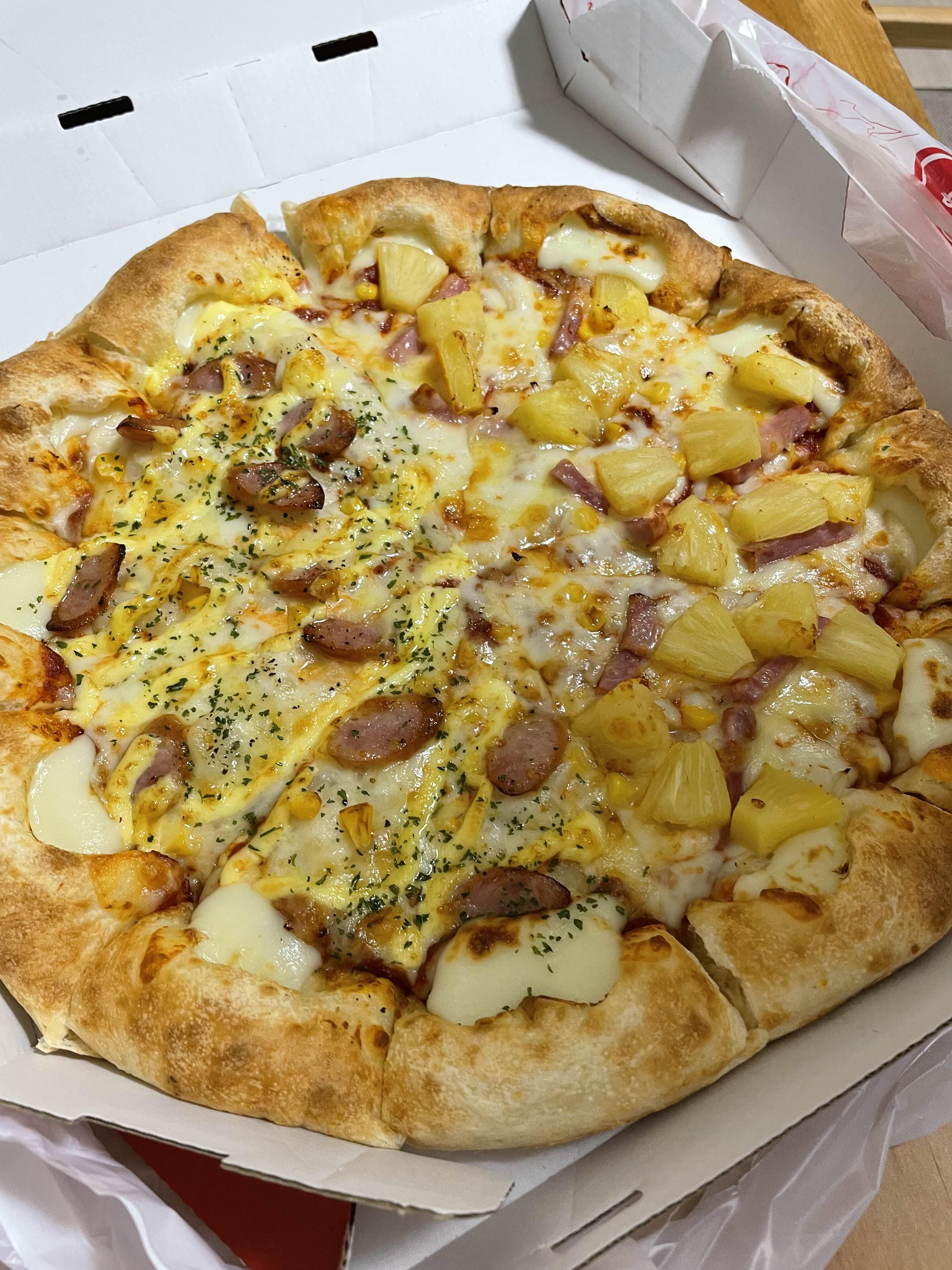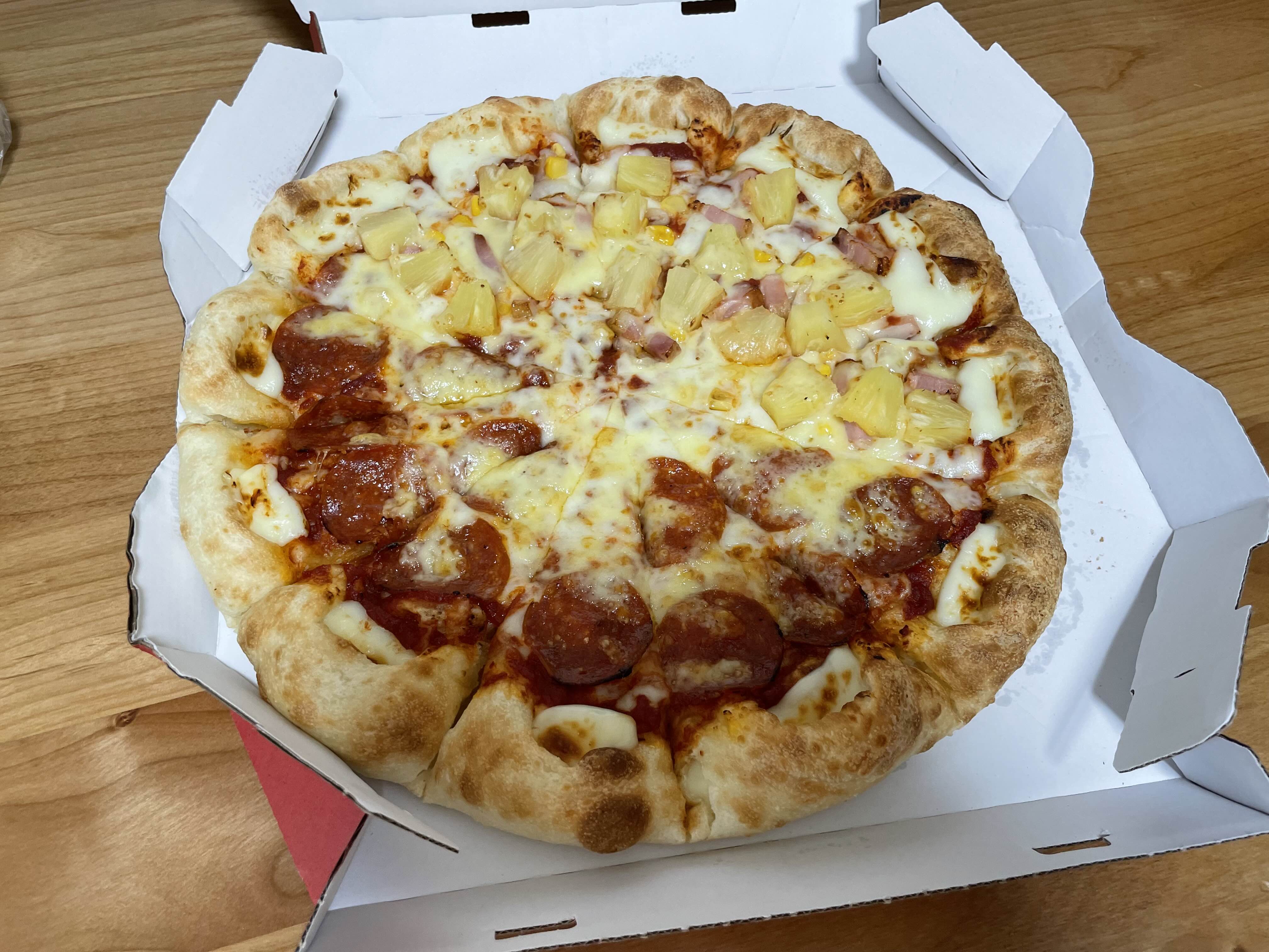 내가 주문한건 페퍼로니 + 하와이안 + 치즈크러스트로 해서 2,600엔