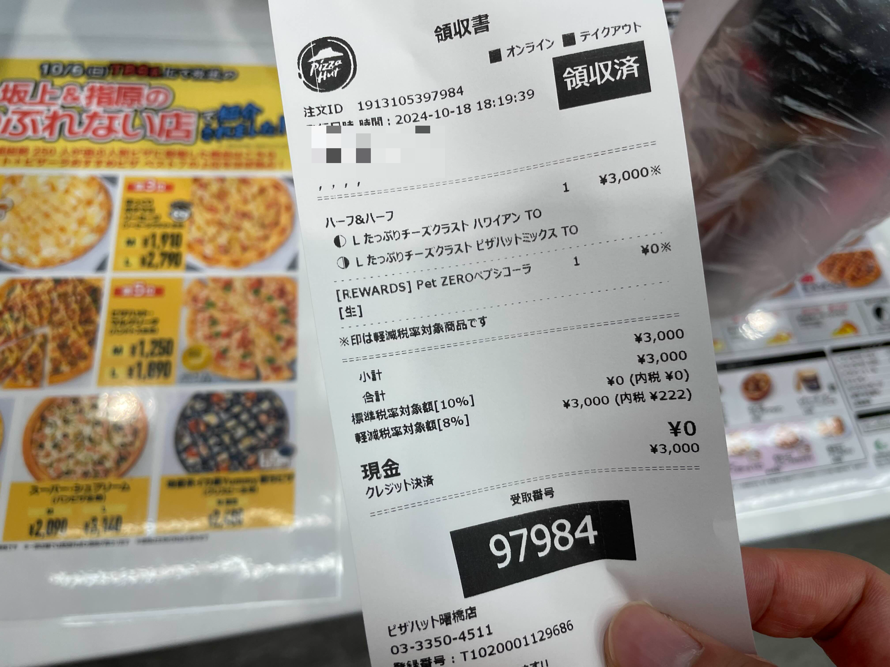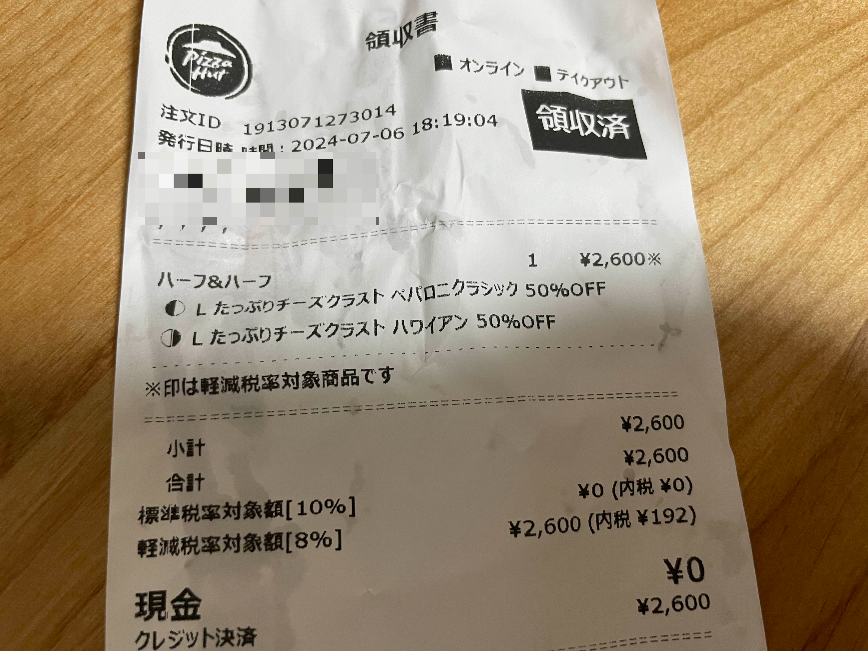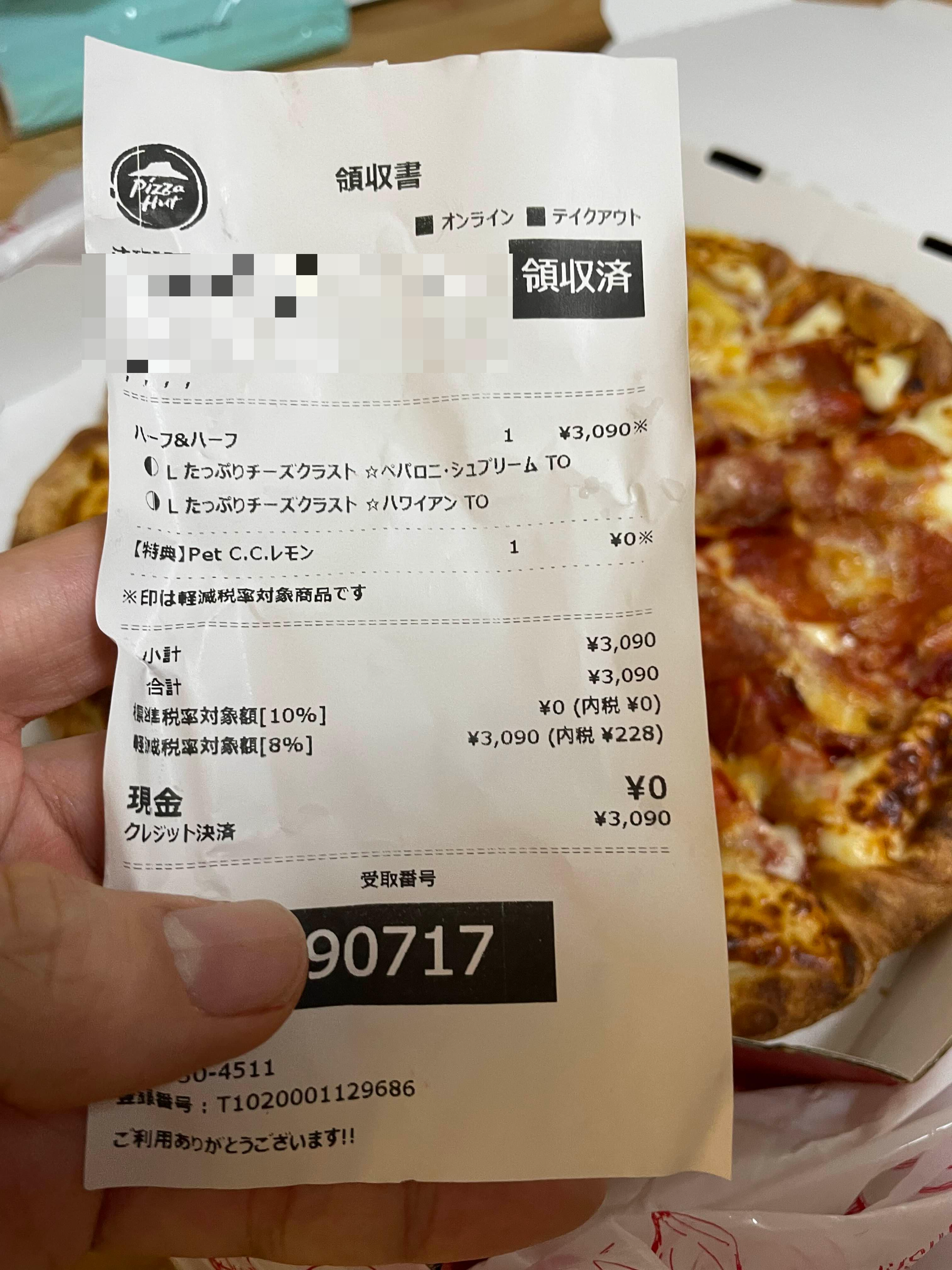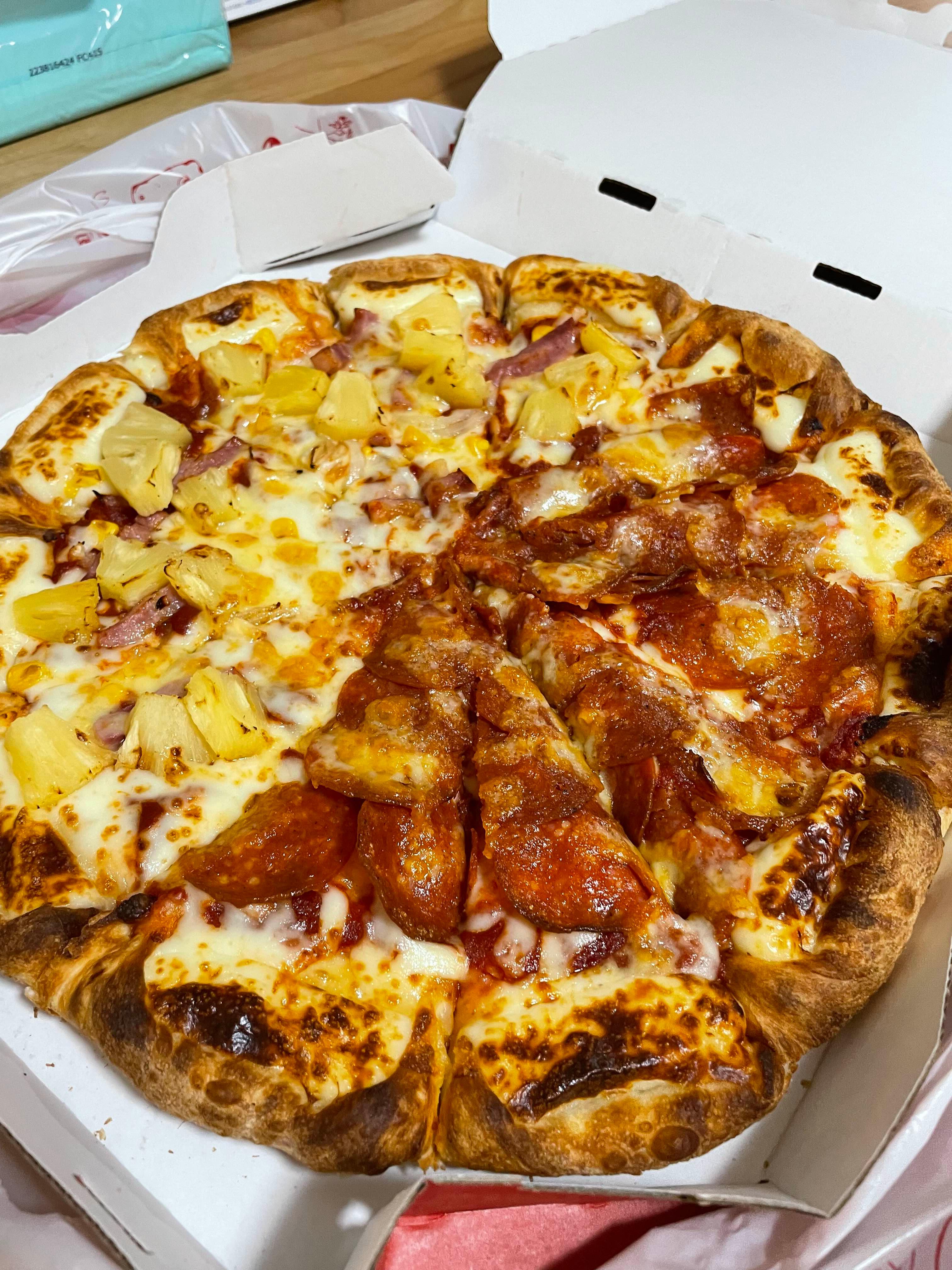 내가 주문한건 페퍼로니 + 하와이안 + 치즈크러스트로 해서 2,600엔