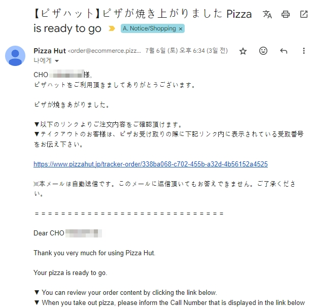 메일로도 주문 / 오븐 입장 / 완성 / 설문조사 등등 실시간으로 알림이 온게 매우 인상적이었다