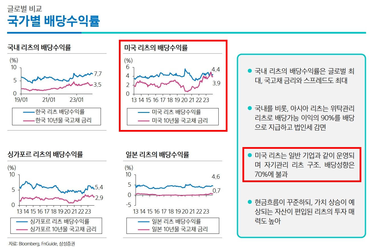 미국 리츠의 배당수익률은 대략 4% 선..