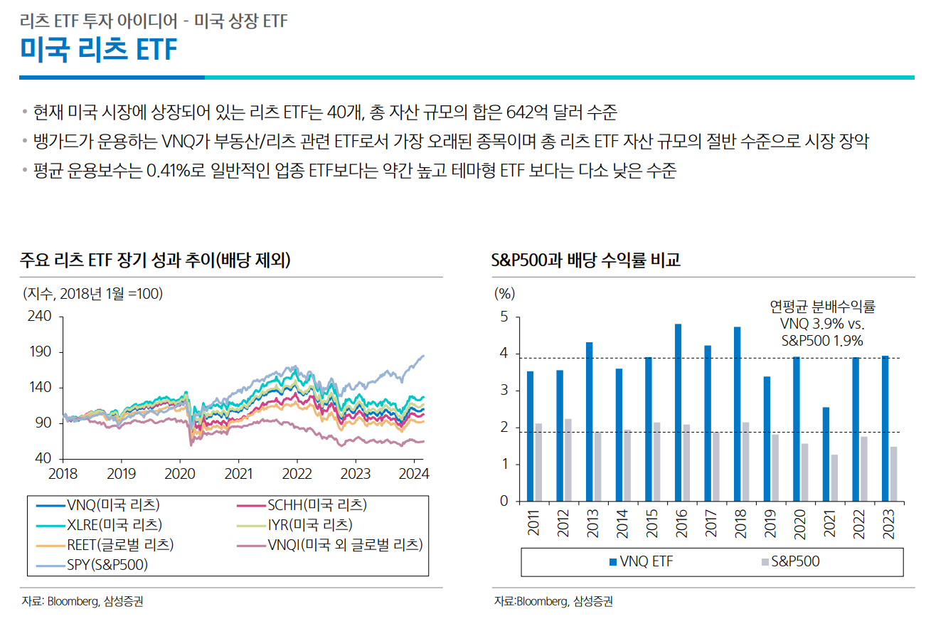 뱅가드의 VNQ가 가장 오래된 종목이며, 총 리츠 ETF 자산의 절반을 차지하고 있을 정도라고 한다