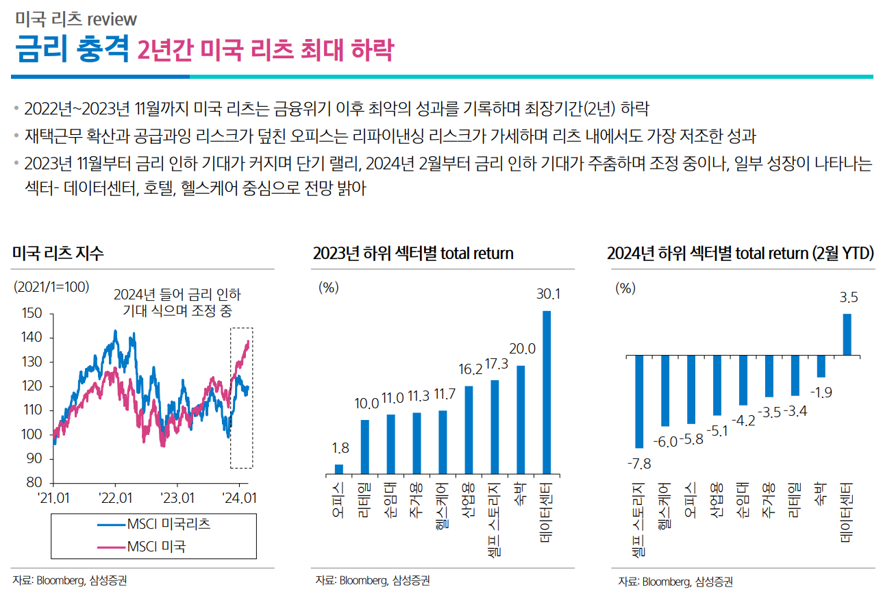 실제로 2년간 금리가 폭등하면서 리츠도 최대의 하락을 기록하고 있다고 한다