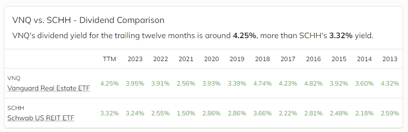 VNQ vs. SCHH — ETF comparison tool