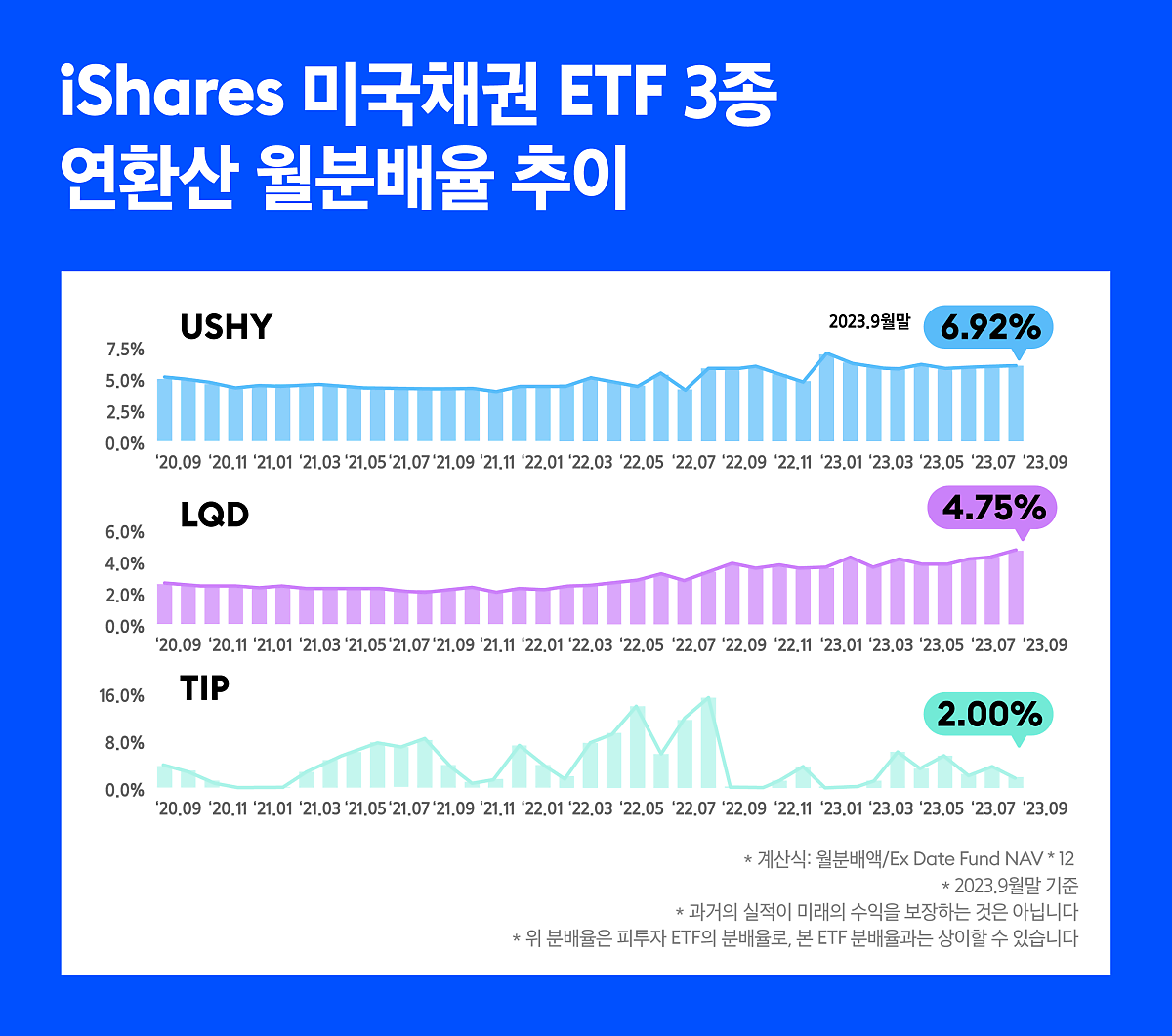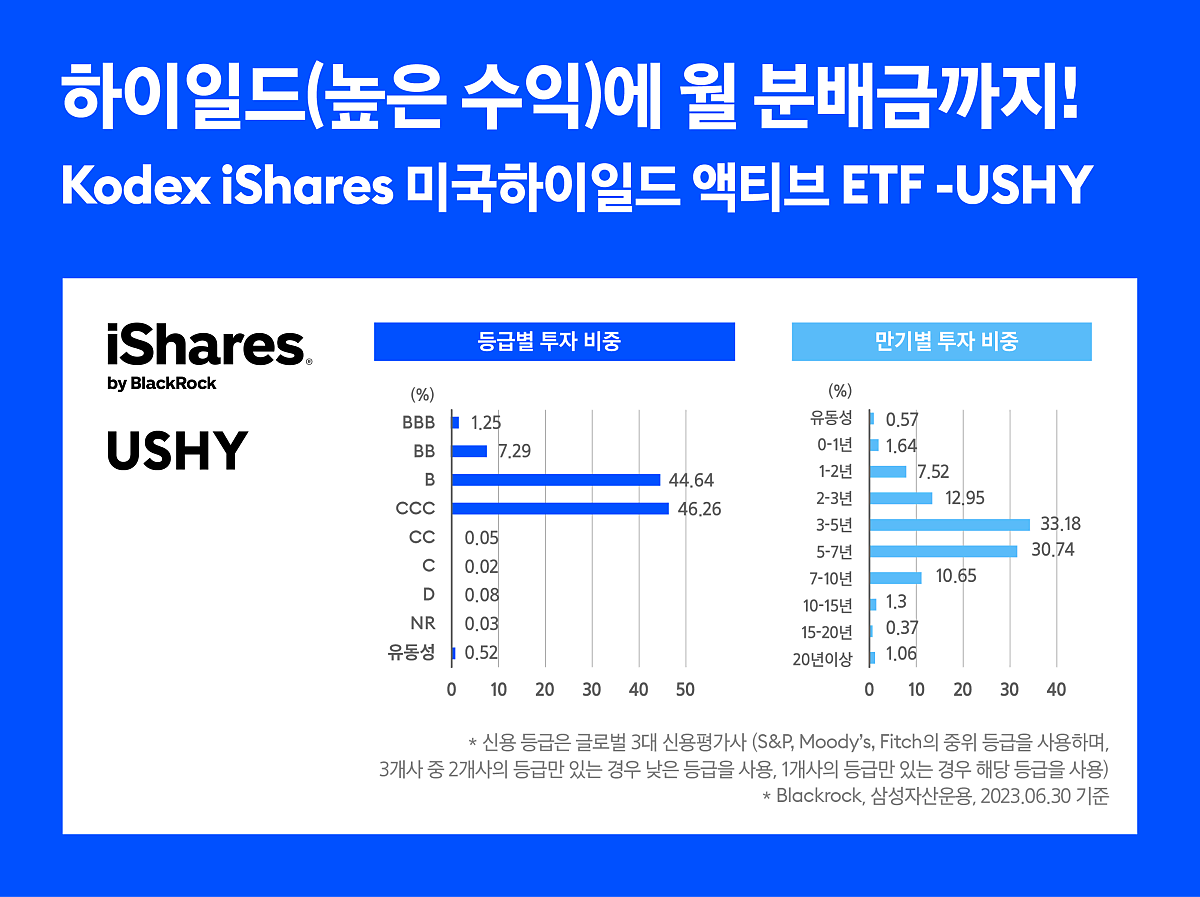 삼성증권에서 나온 자료에 따르면 USHY라는 하이일드 채권의 연환산 월 분배율은 약 7% 수준이다