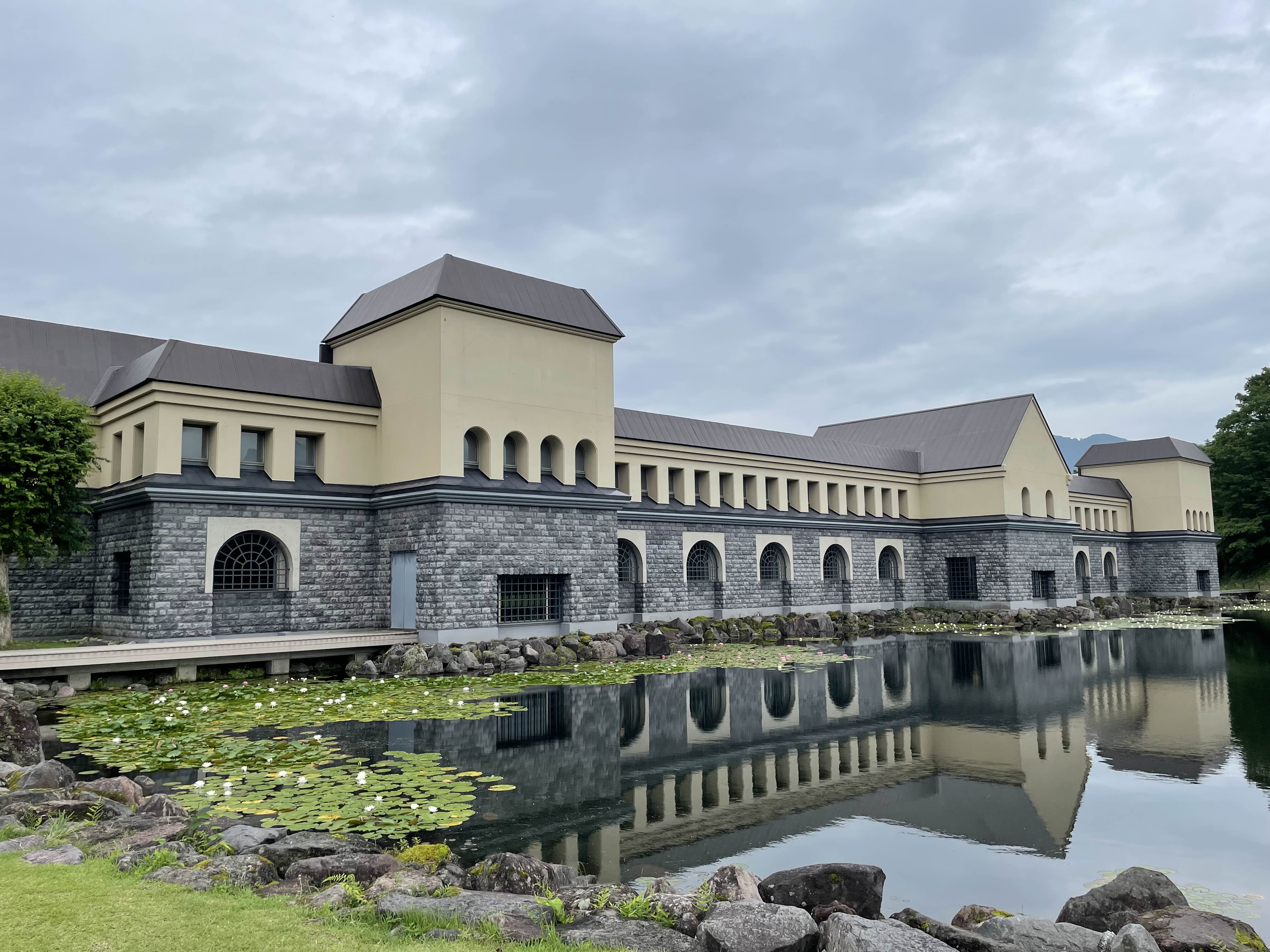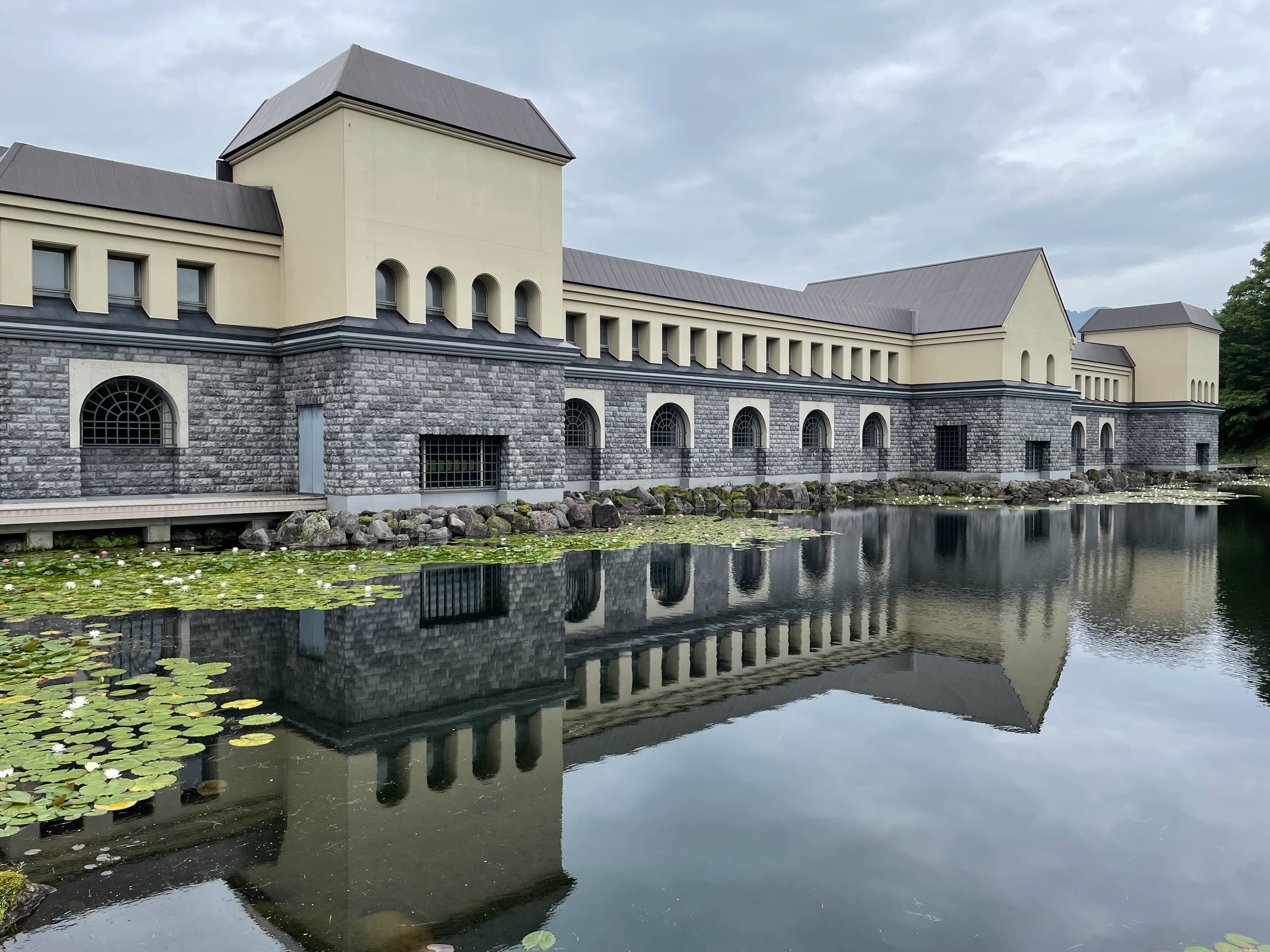 미술관 건물은 반다이-아사히 국립공원 내 55,000평방미터 이상의 부지에 약 2000평방미터의 바닥 면적을 가지고 있으며, 창립자의 중세 마구간을 연상시키는 디자인 비전에 따라 마구간을 본떠 설계되었습니다.