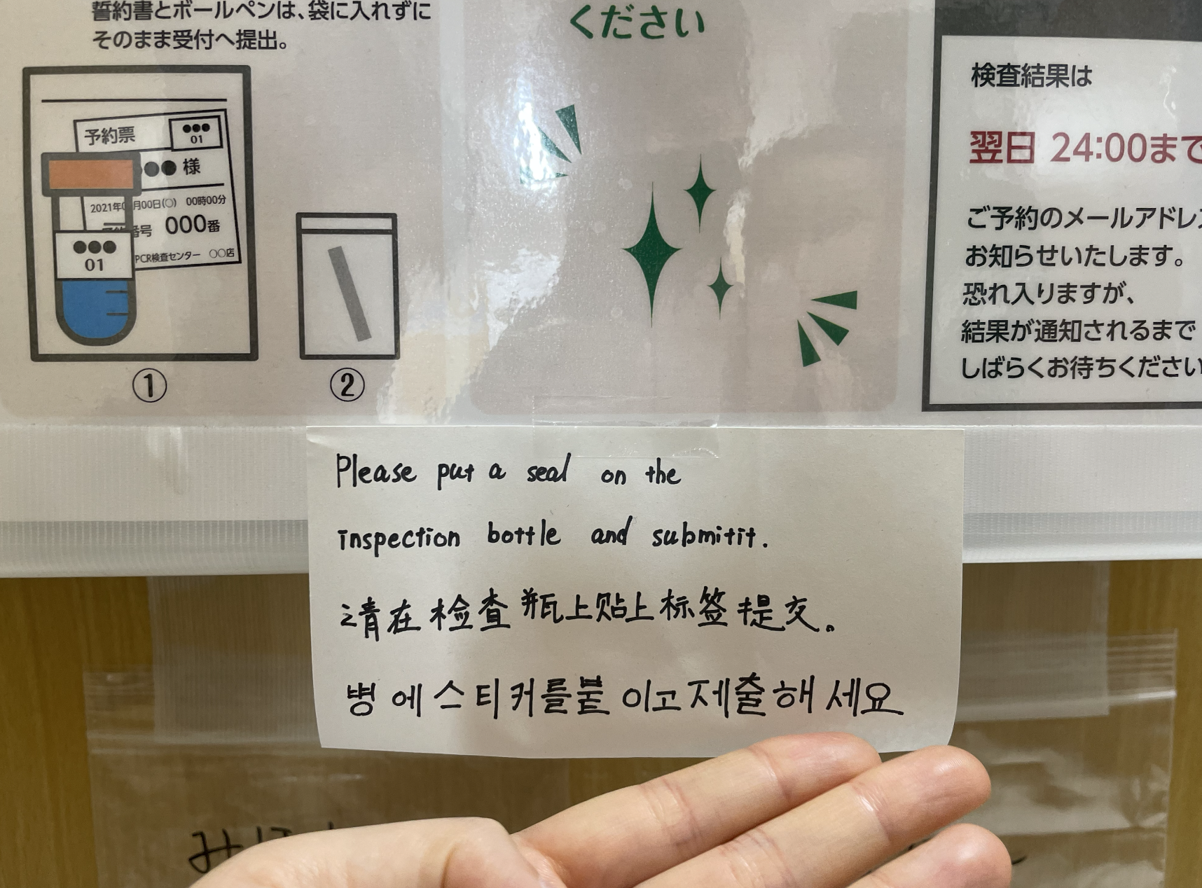 공항에서도 그랬지만 일본은 PCR 검사를 침을 뱉는 방법으로 진행한다.
