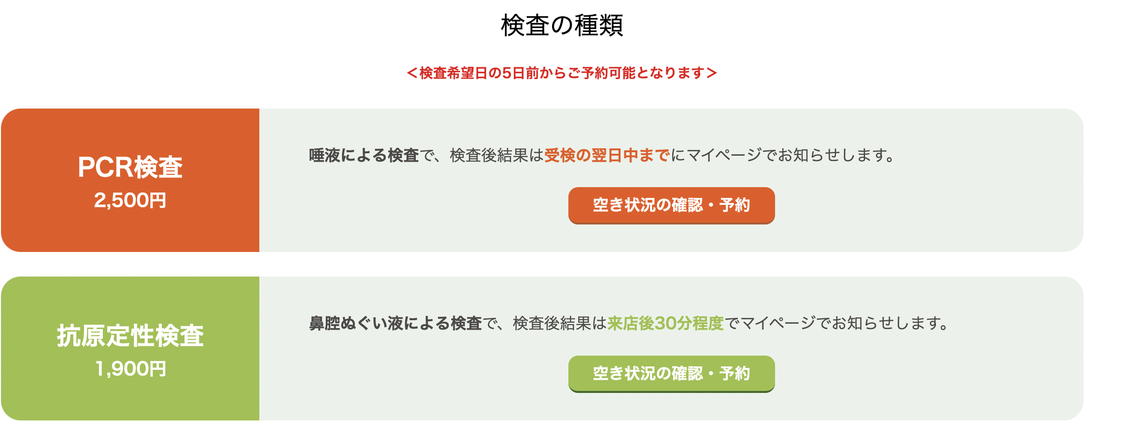 아키하바라 점은 PCR은 2,500엔, 신속항원은 1,900엔