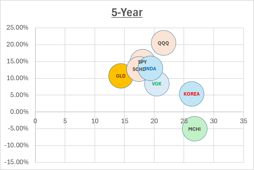 10년 기준으로 보면 INDA가 계속 좋다가 최근에는 좀 뒤쳐지는 느낌이다