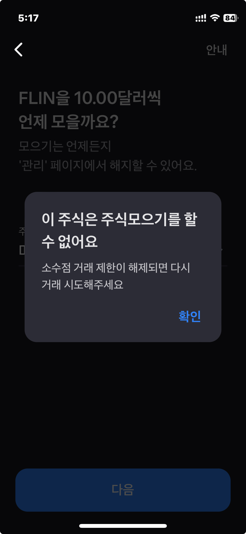 FLIN은 소수점 거래가 안된다 ㅠㅠ