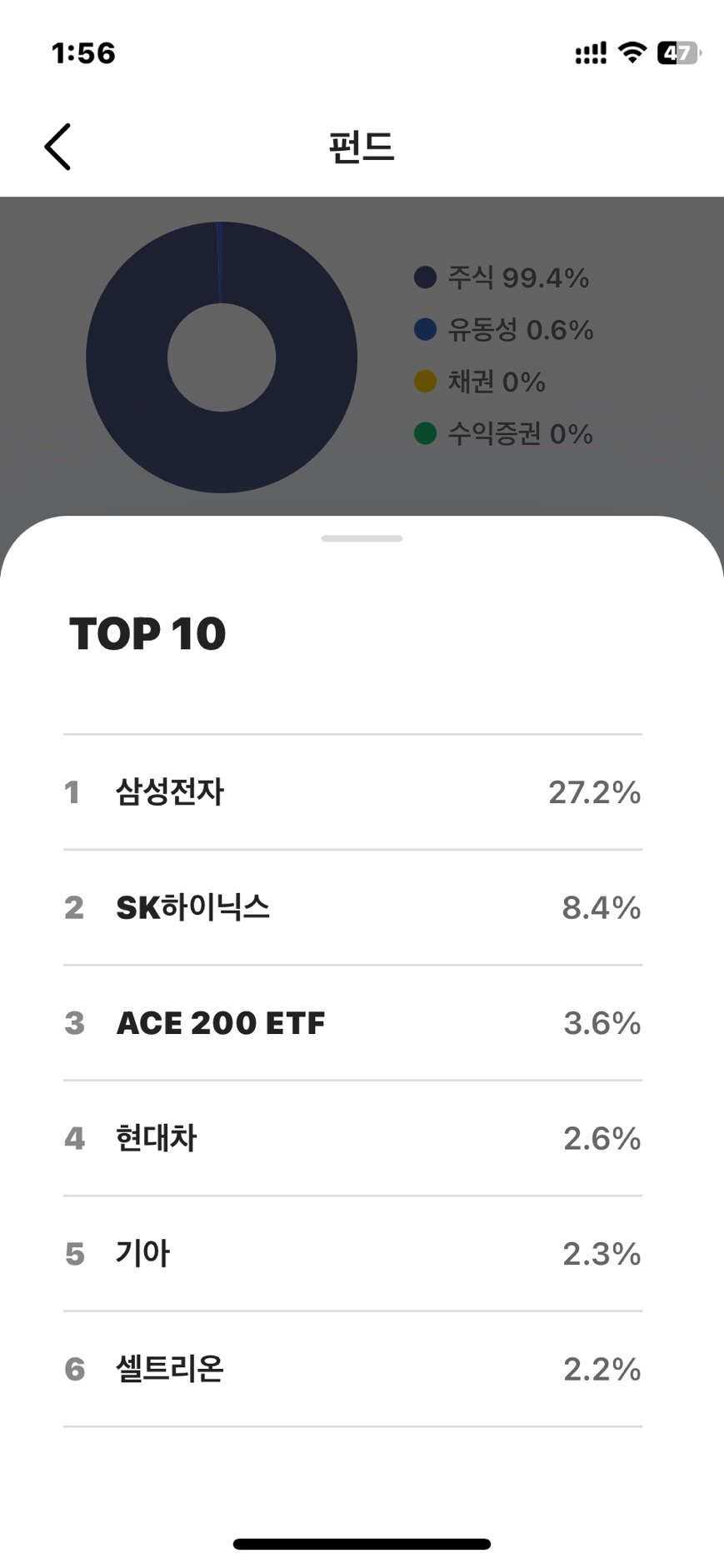 삼전 하닉 그리고 ACE ETF도 포함되어있따