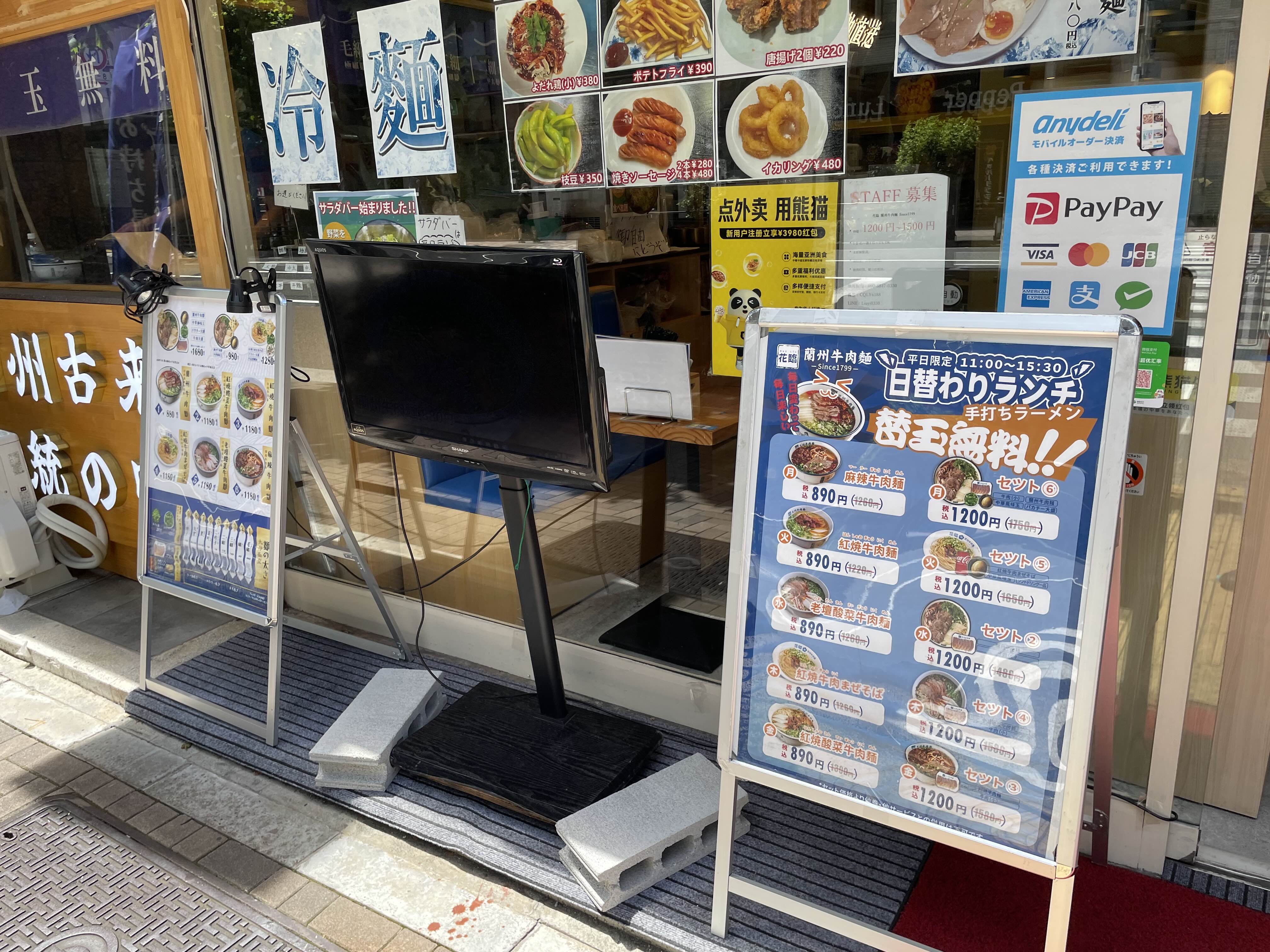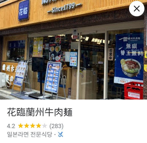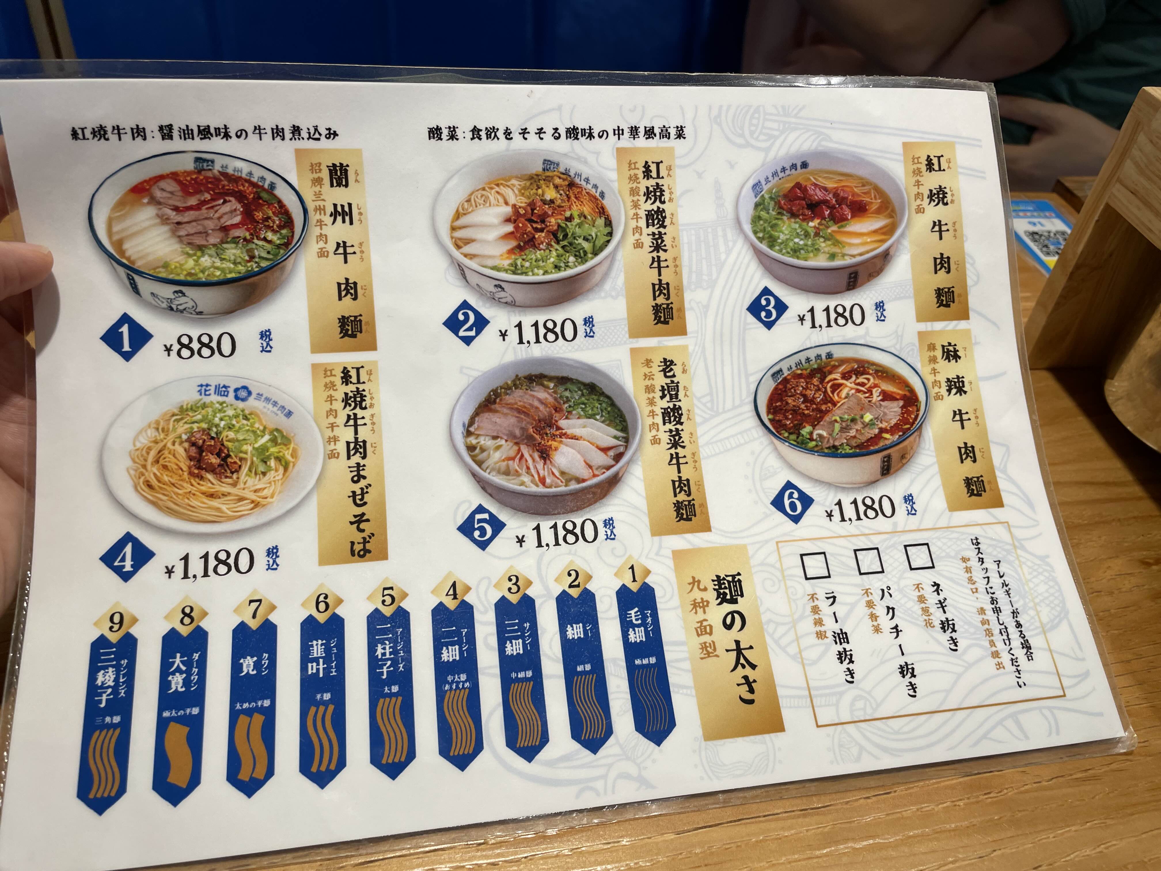 花臨蘭州牛肉麺(카린란슈규니쿠멘)은 중국의 전통적인 란저우(蘭州) 스타일의 소고기 국수를 전문으로 합니다.