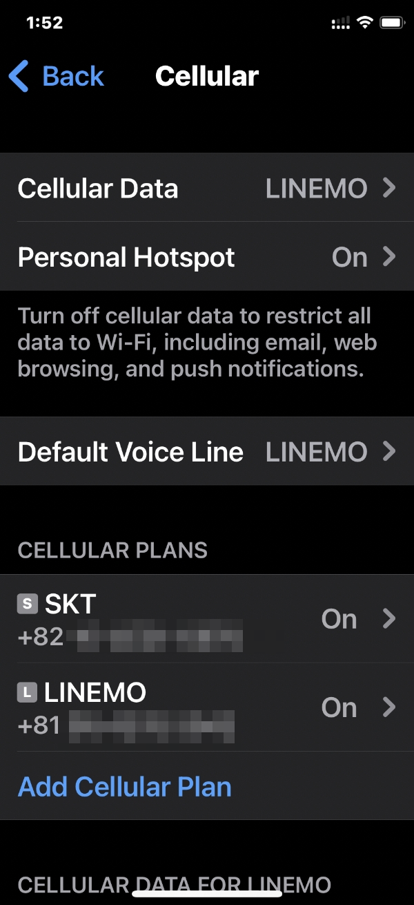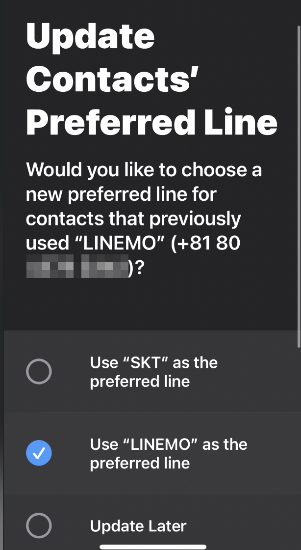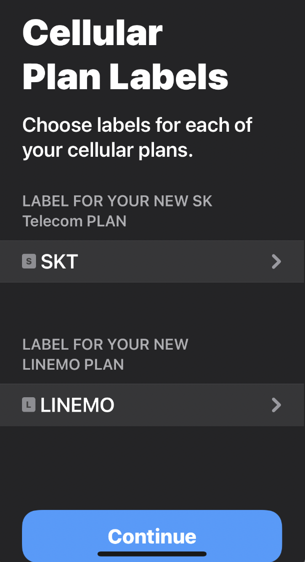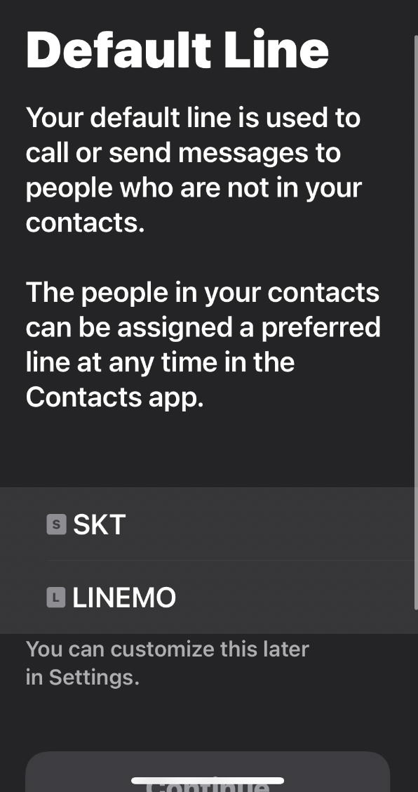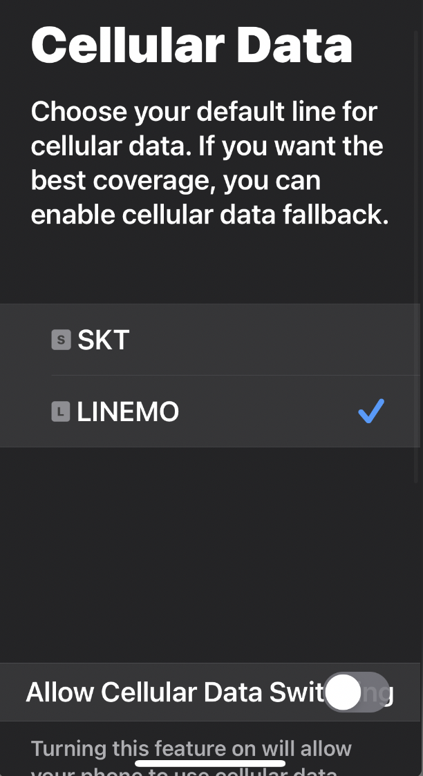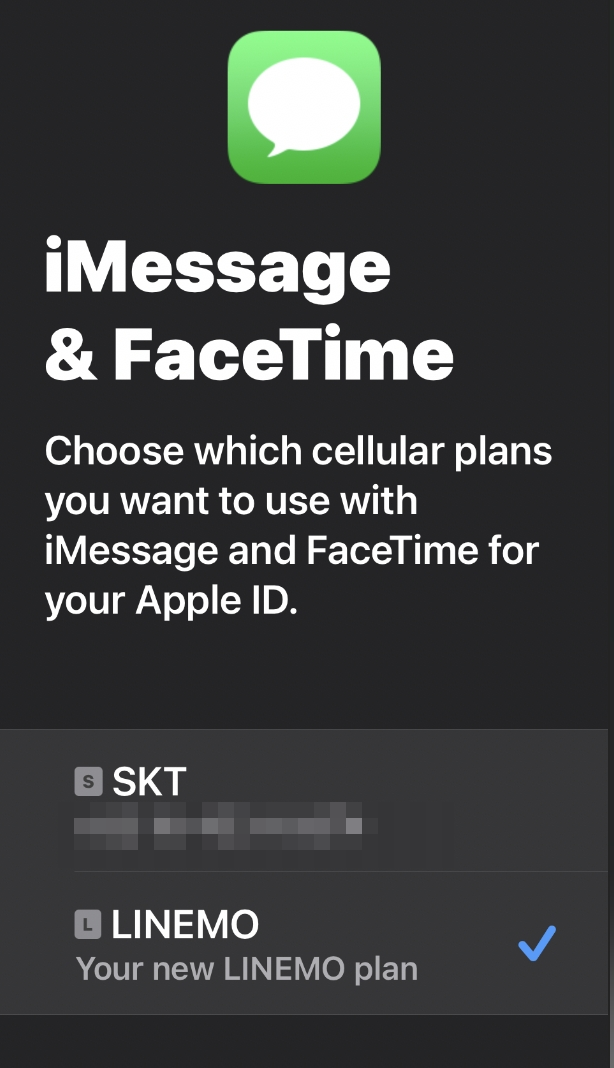 SKT와 LINEMO를 동시에 사용하겠다는 설정이다.