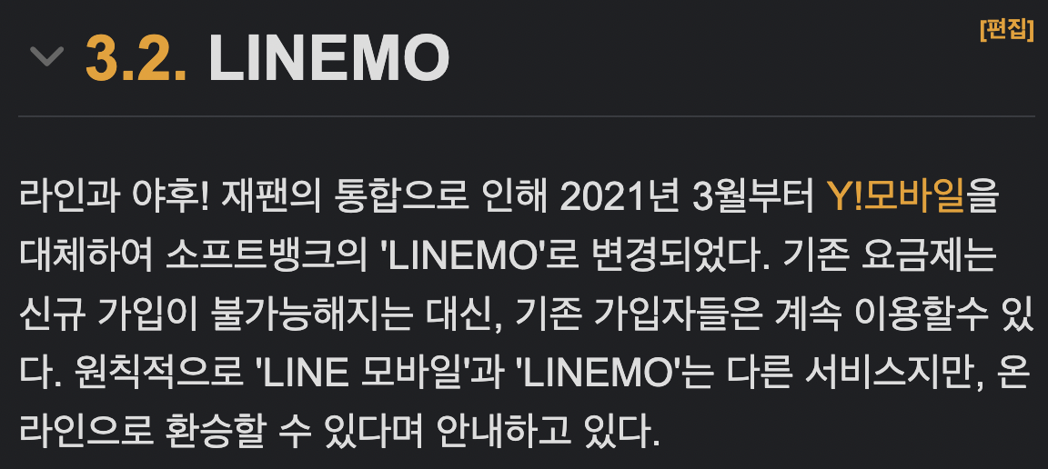 라인 모바일은 없어지고 이제는 LINEMO만 남았다.