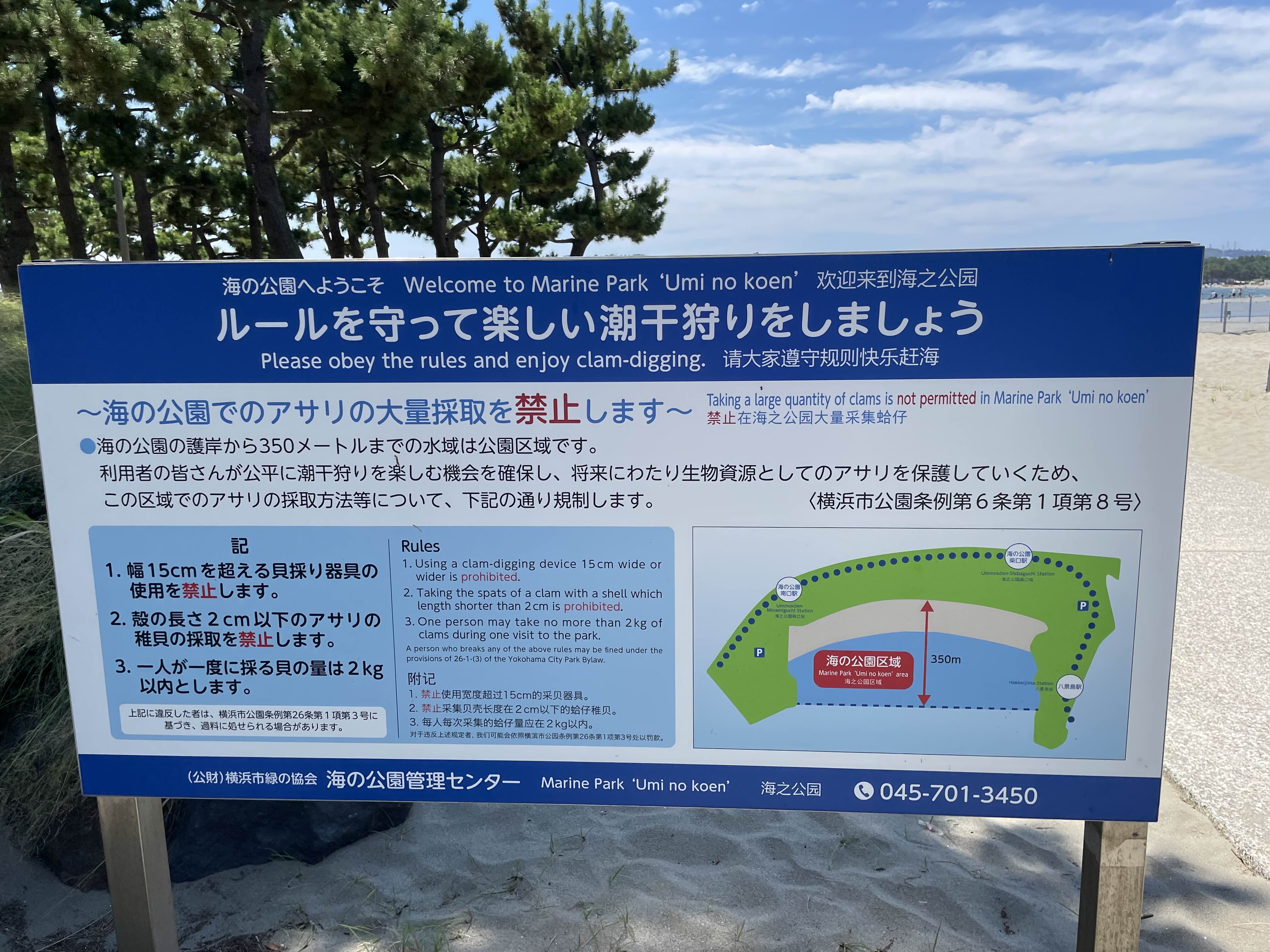 〜해양 공원에서의 바지락 대량 채취를 금지합니다〜