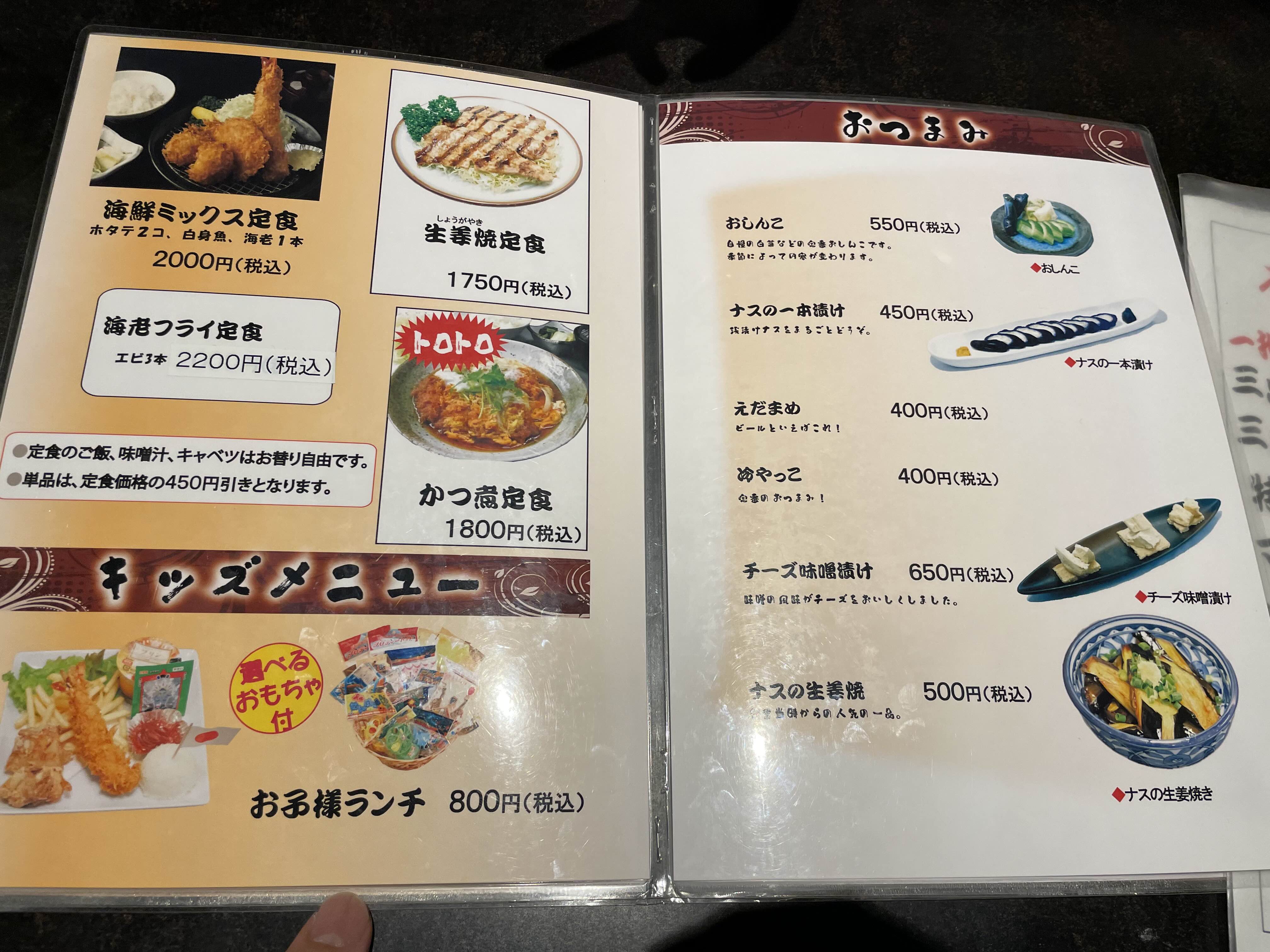 "おしながき 勝"는 일본 요코스카 시 오파마 지역에 위치한 돈카츠 전문점 "とんかつ勝 追浜本店"의 메뉴를 의미합니다.