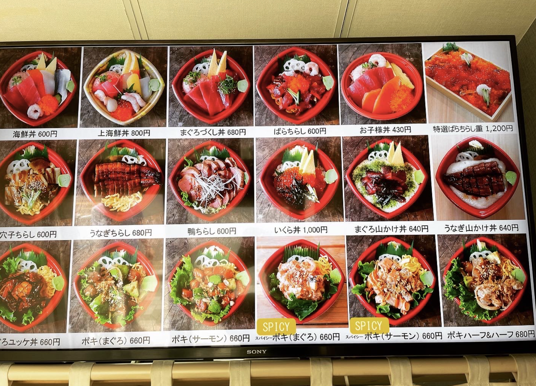 메뉴는 기본 카이센동이 600엔, 상급 카이센동이 800엔