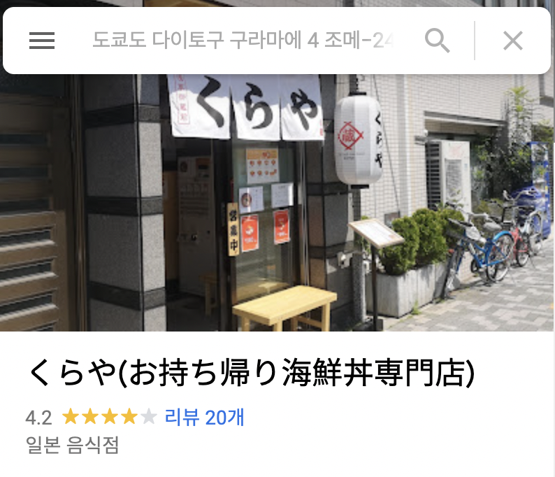 사실 뭐 대단한 곳들이 있는 것은 아니지만 가까운 곳에 쿠라야 라는 카이센동 집을 발견했다.