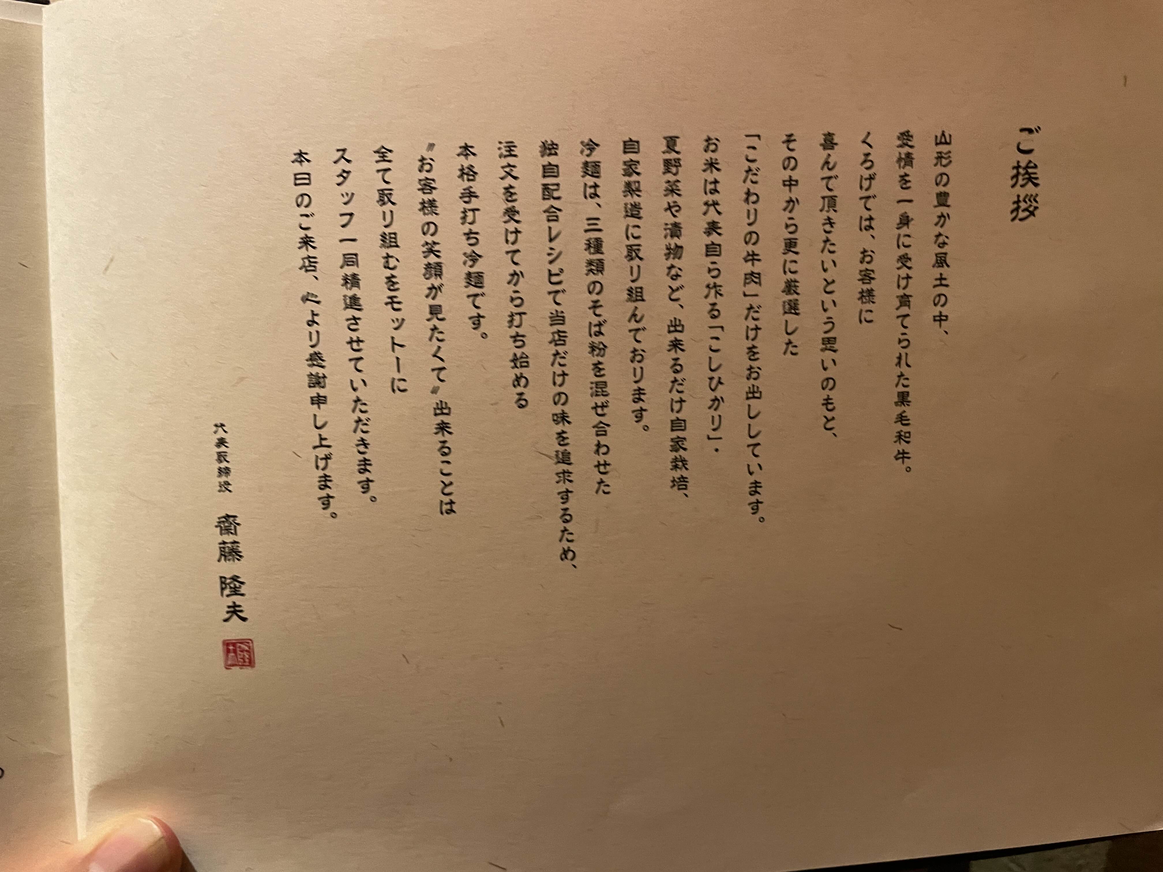 사면은 세 종류의 메밀가루를 혼합한 독자적인 레시피로, 저희 가게만의 맛을 추구하기 위해 주문을 받은 후에 면을 치기 시작하는 본격 수타 냉면입니다.