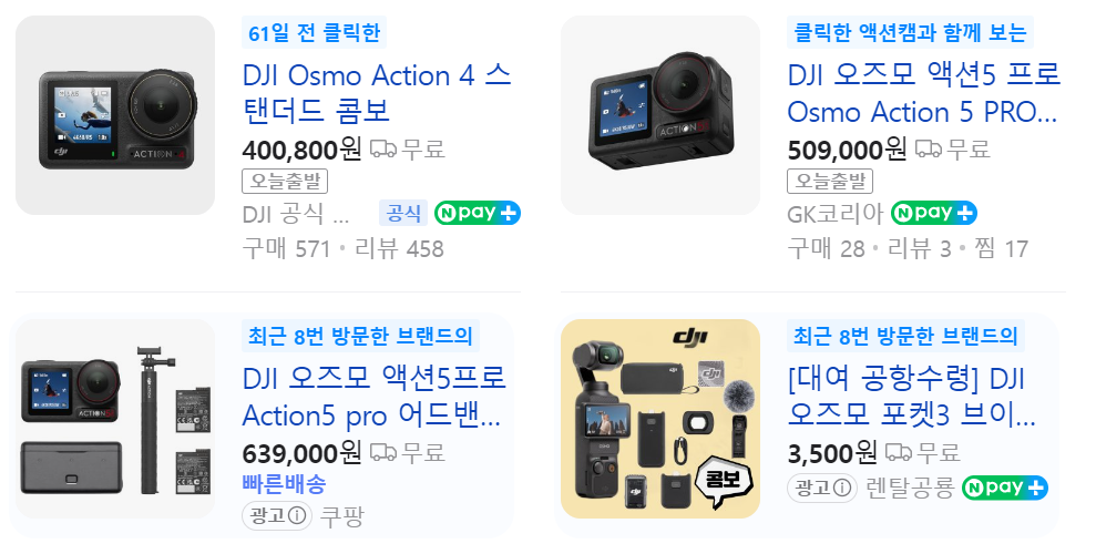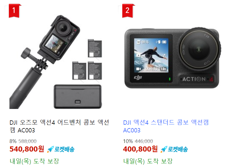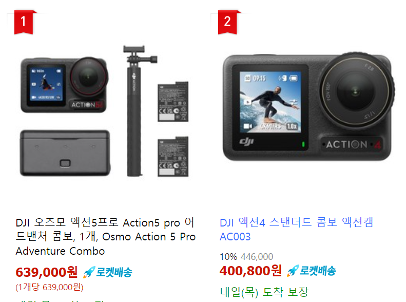 갓팡 가격으로는 액션 5 어드밴처 콤보가 64만원, 액션 4 스탠다드가 10% 할인한 40만원..