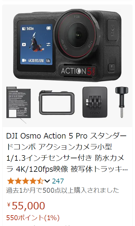 Action 5 스탠다드는 55,000엔이다