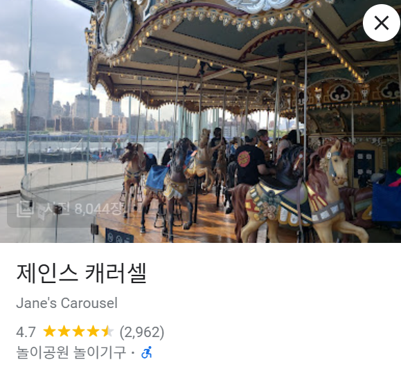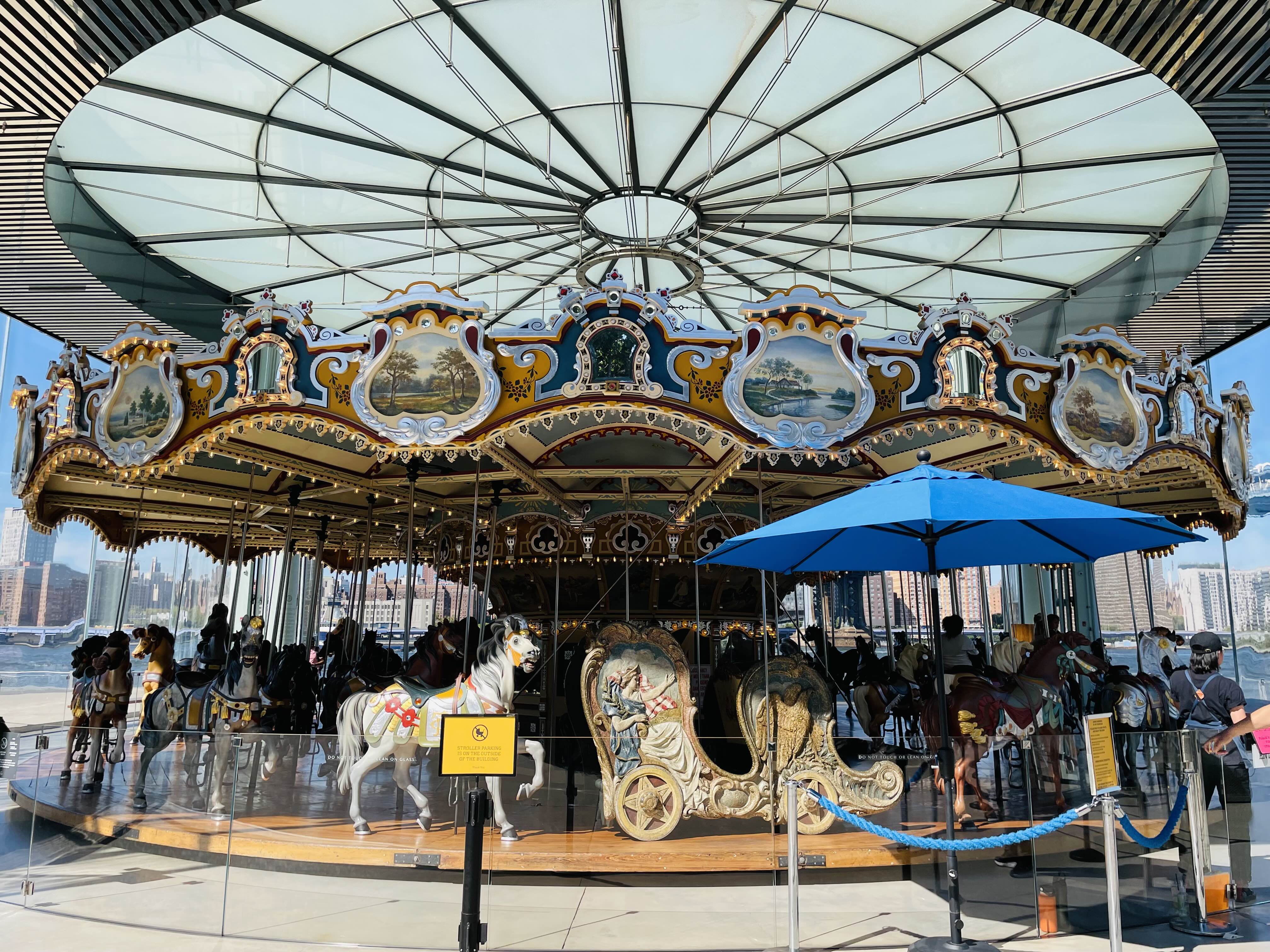 Jane's Carousel는 브루클린 브리지 파크의 DUMBO 지역에 위치한 역사적이고 아름다운 회전목마입니다.