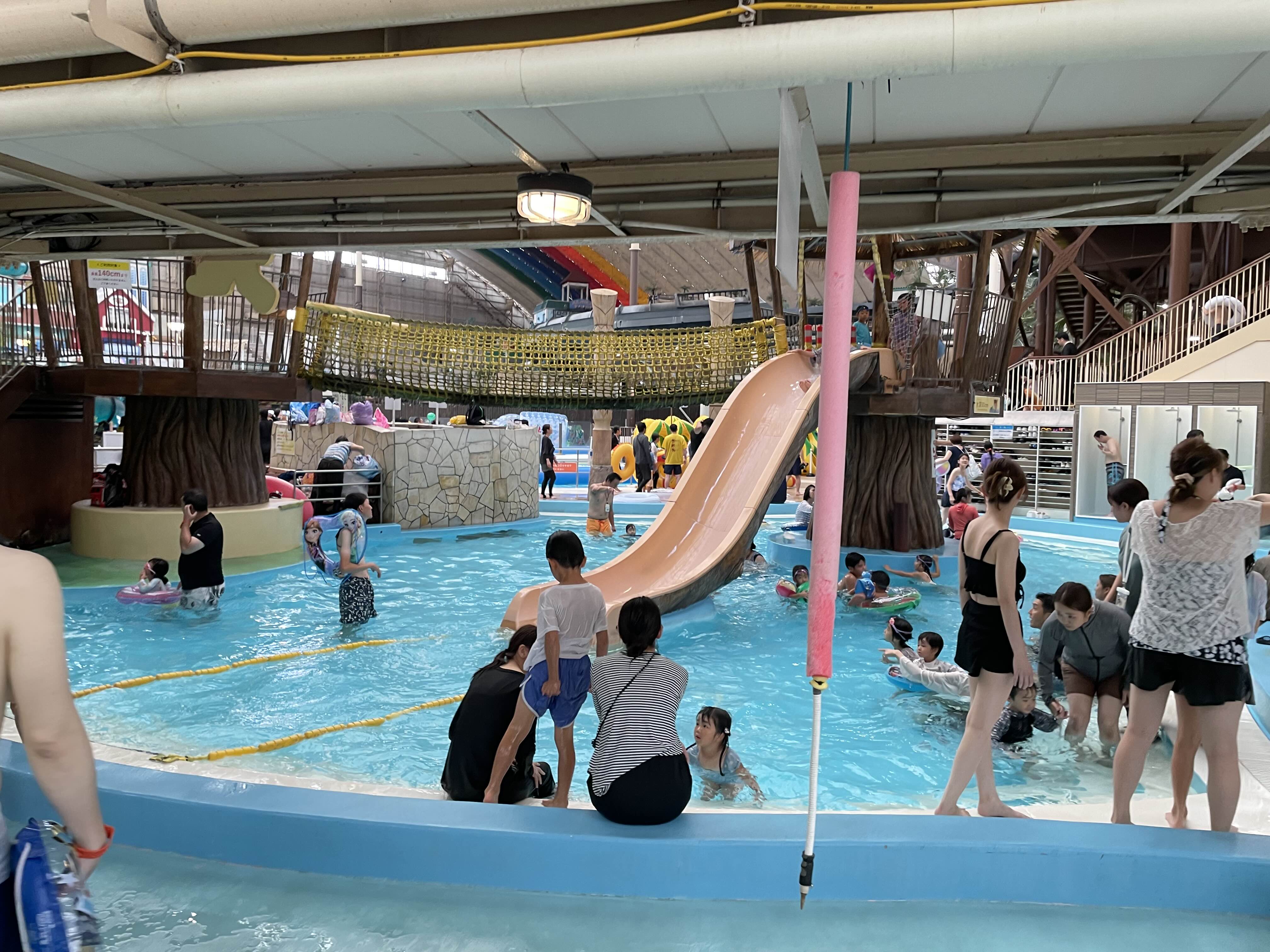 저 멀리 성인용 풀도 잇는데 나중에 자리를 옮겨서 여기서도 놀았다
