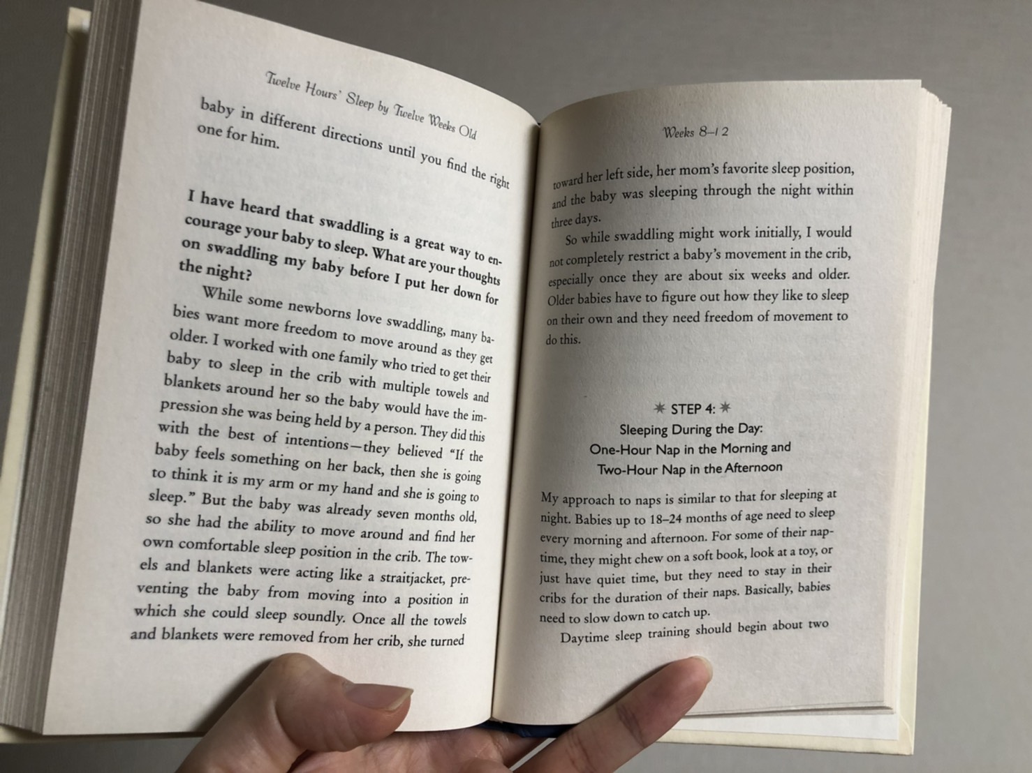 낮잠 훈련은 아이가 통잠을 지속적으로 자고 약 2주 후에 시작해야 한다. 그 정도 시기가 되야 아이의 자연스러운 낮잠 패턴을 알게 되고, 그 패턴에 따라 낮잠 시간을 정한다. 아이는 오전에 1시간, 오후에 2시간 매일 같은 시간 잠을 자야 한다.