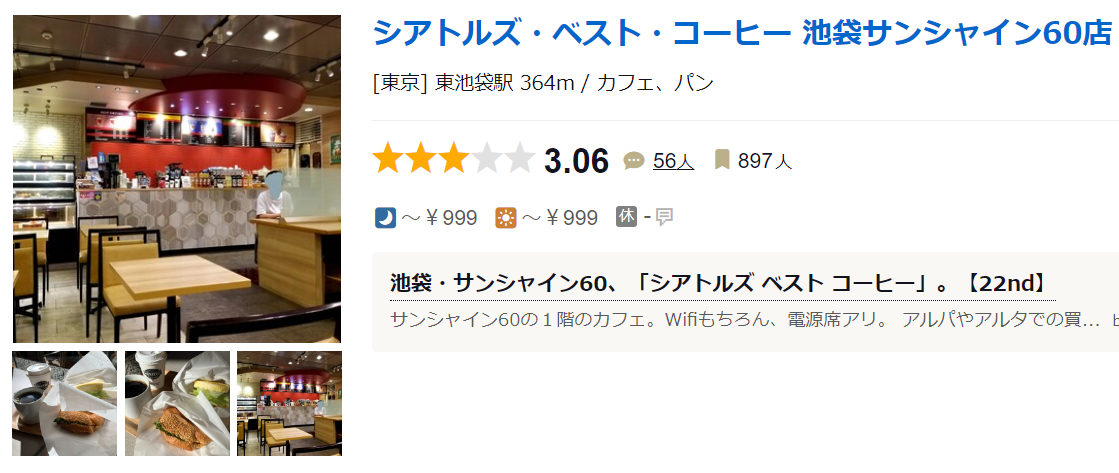 シアトルズ・ベスト・コーヒー 池袋サンシャイン60店 (東池袋/カフェ)