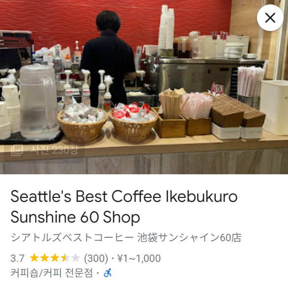 Seattle's Best Coffee Ikebukuro Sunshine 60 Shop · 일본 〒170-0013 Tokyo, Toshima City, Higashiikebukuro, 3 Chome−1, サ
