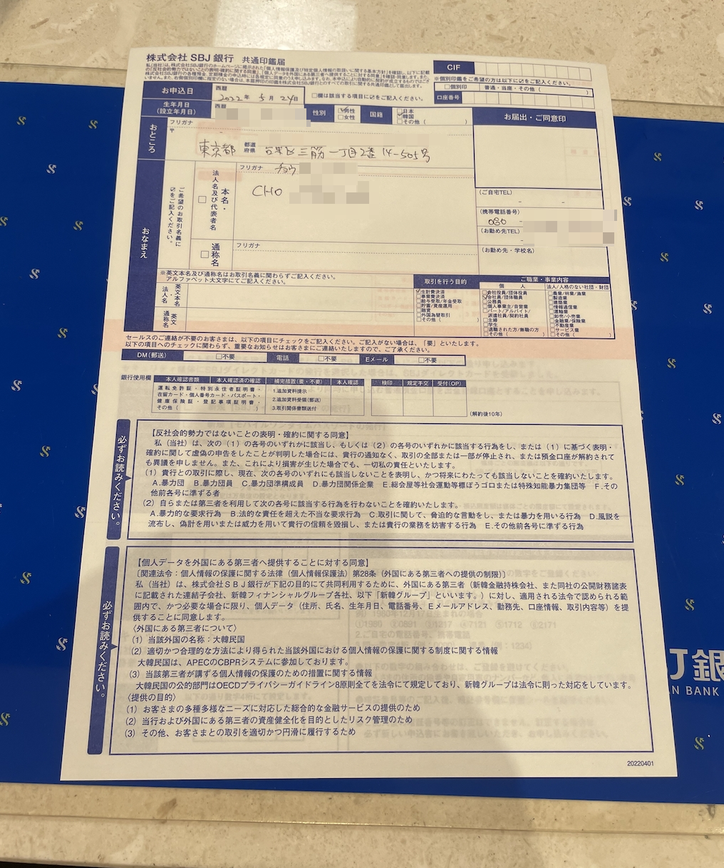 적는 항목은 SBJ은행이라 그런지 거의 한국과 비슷하다.