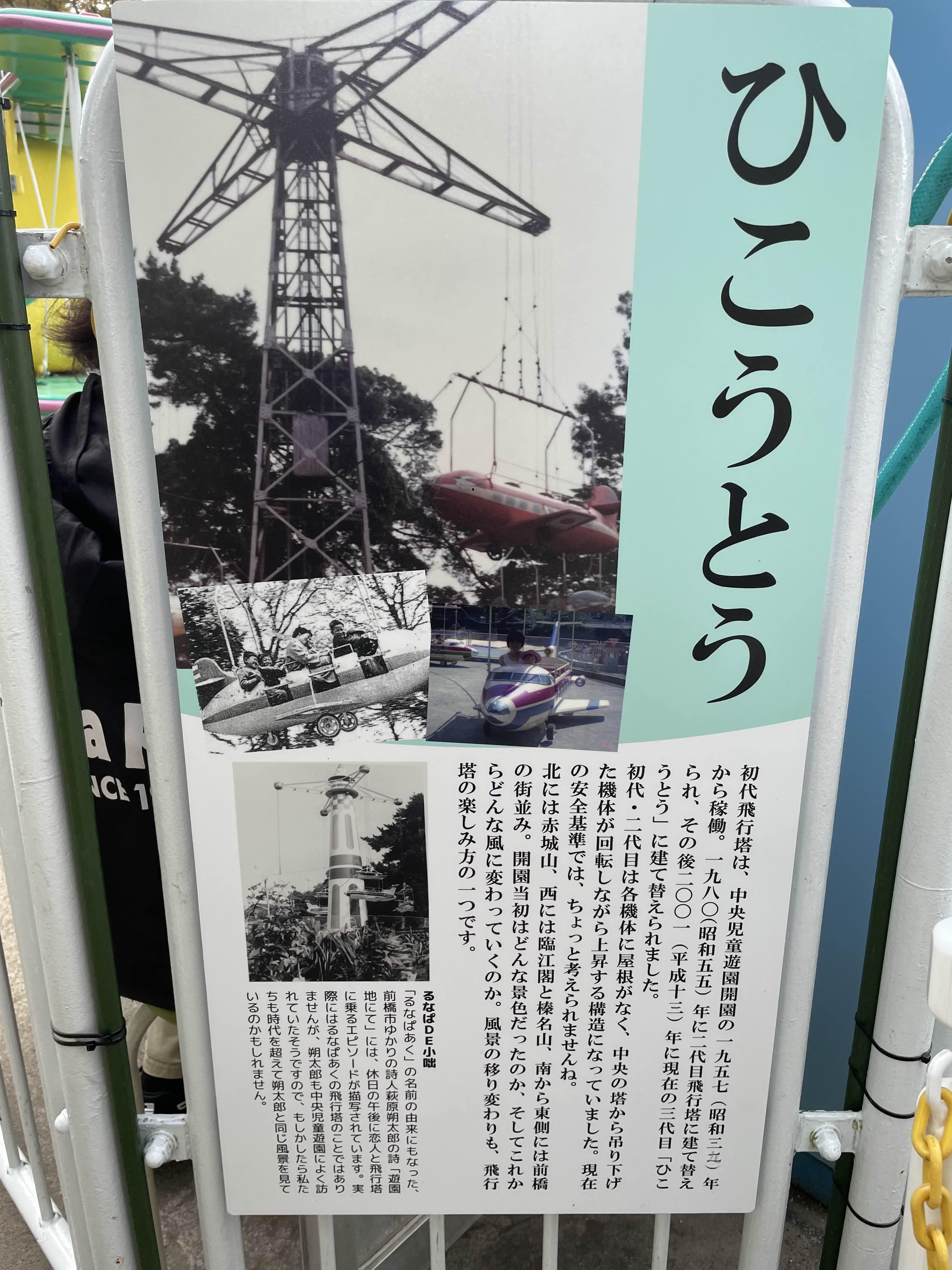 초대 비행탑은 중앙 아동 유원지가 개장한 1957년(쇼와 32년)부터 가동되었습니다.
