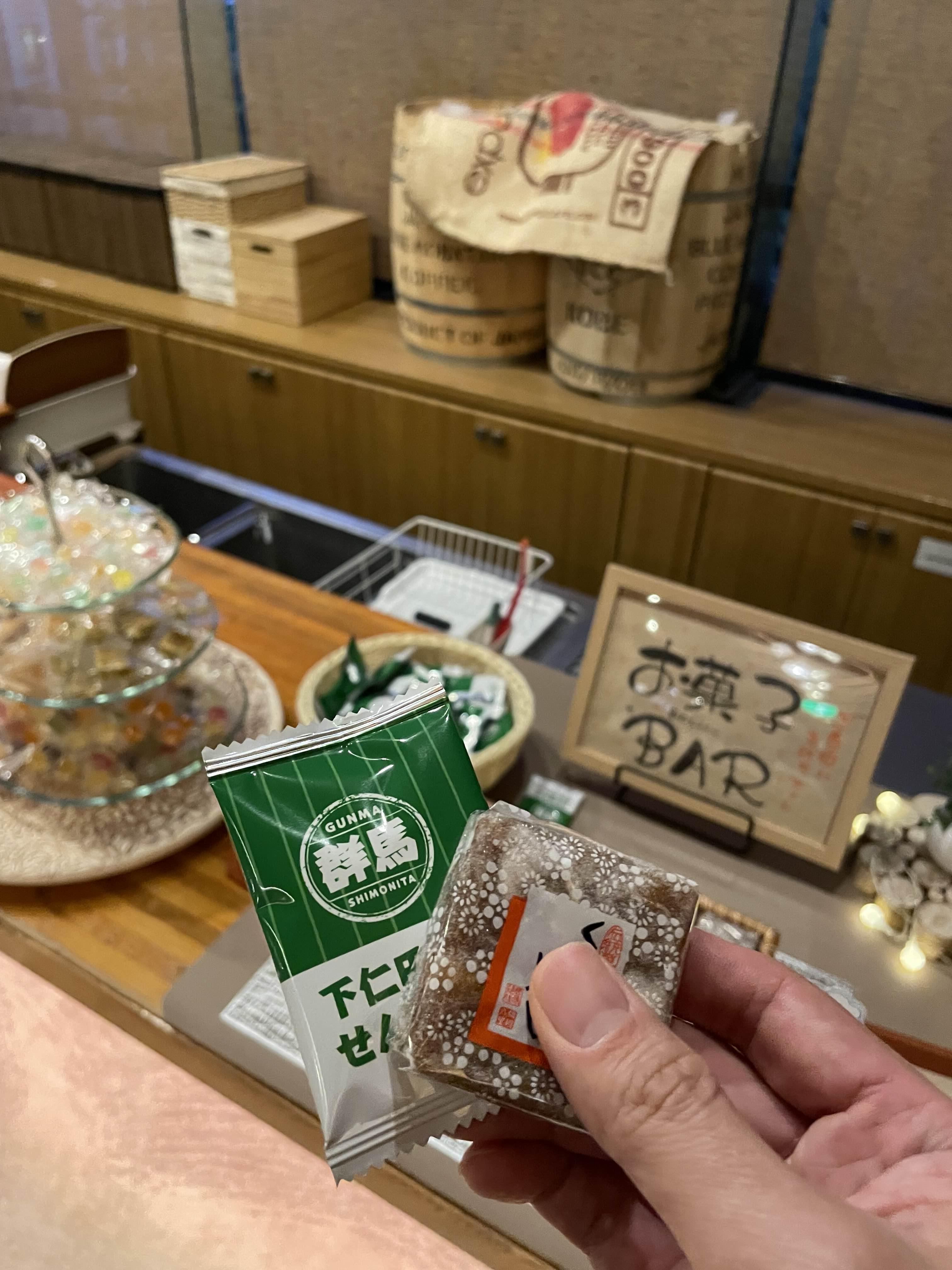 체크아웃하니까 노토반도 뭐시기 하면서 과자도 주었다