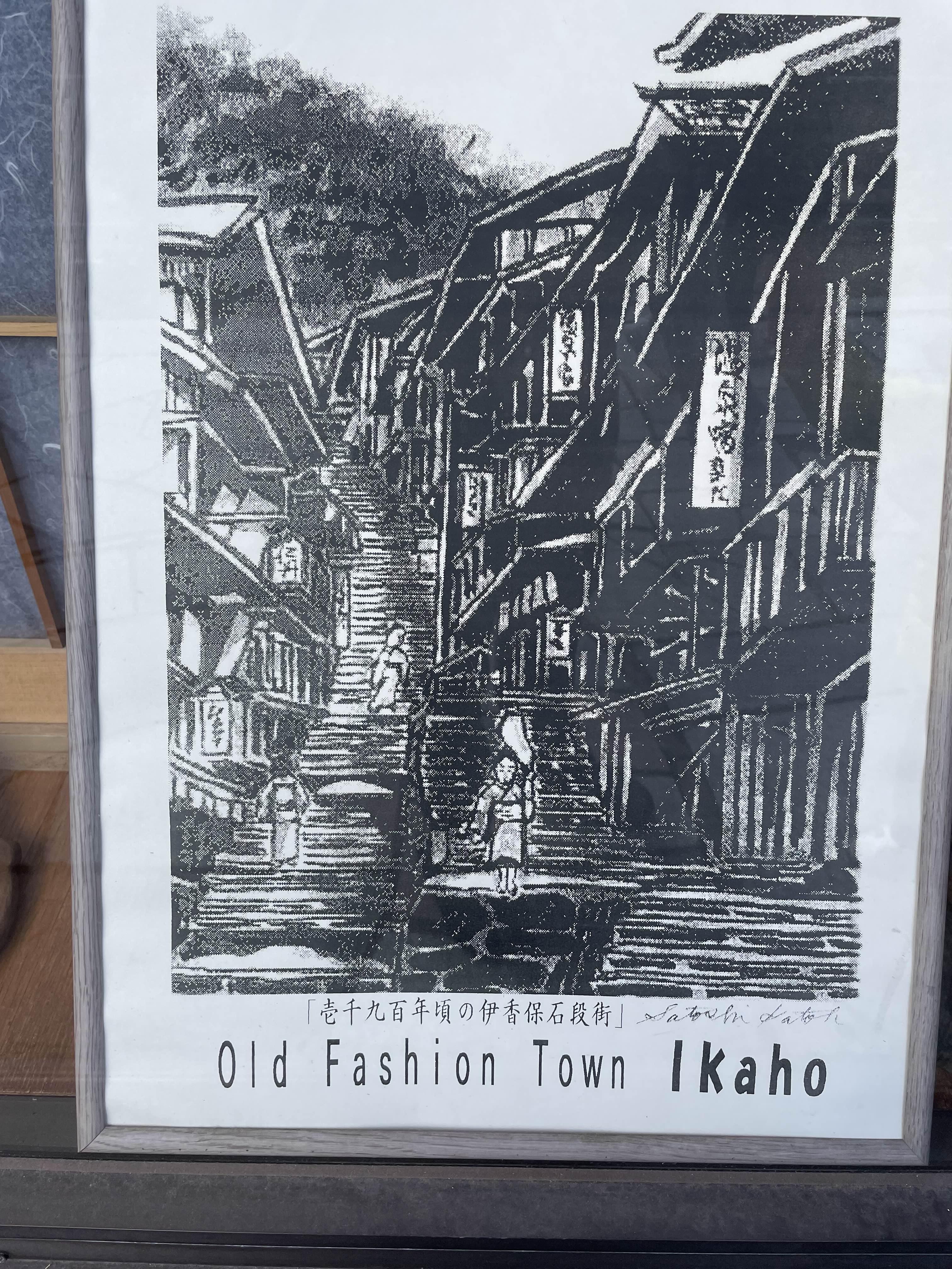 거리를 세로로 관통하는 본도는 다양한 가게들로 둘러싸여 있으며, 긴 긴 돌계단을 만들어 이카호 신사 앞까지 H자 모양으로 무수히 쌓아 올리고, 특별히 건축가와 화가를 기쁘게 한다.