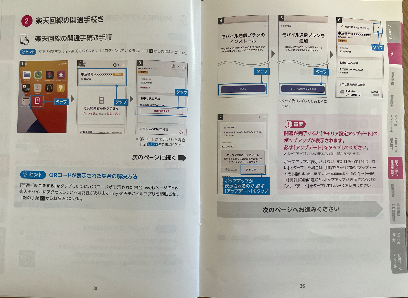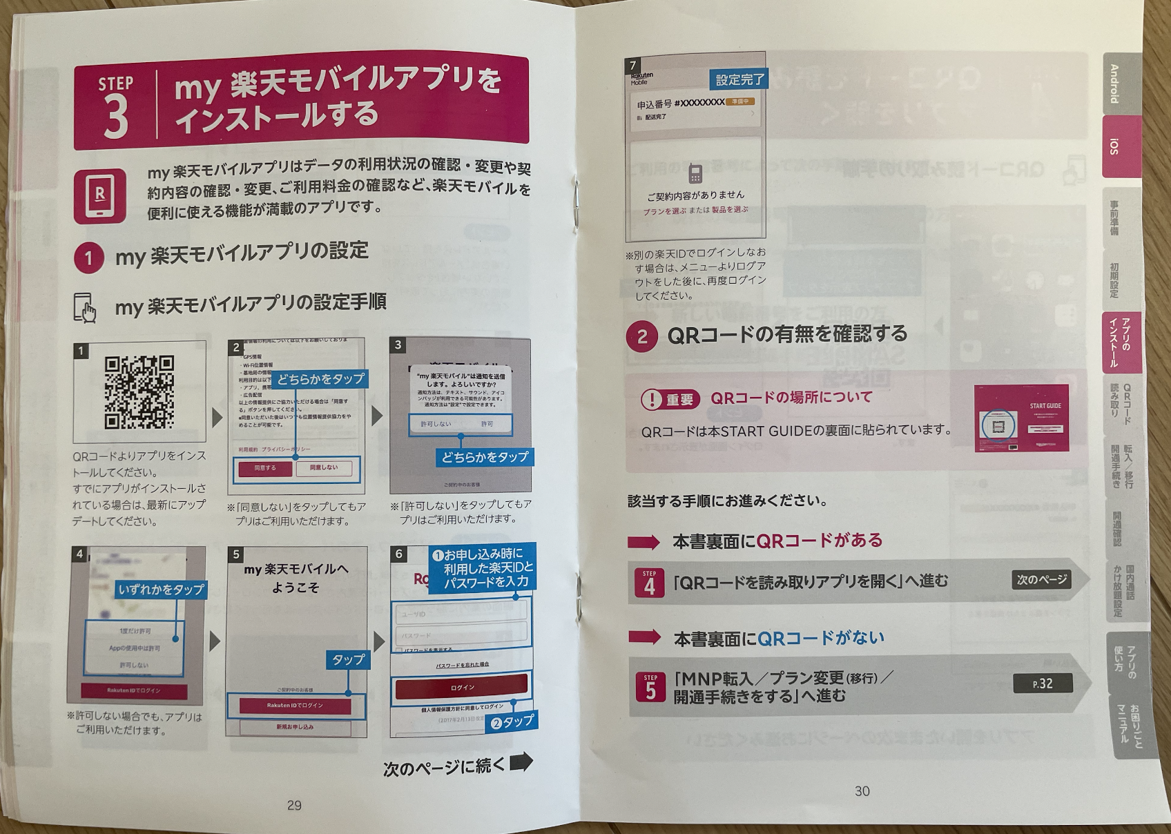 my 라쿠텐 모바일 어플을 다운로드, 이후 QR 로 개통 진행