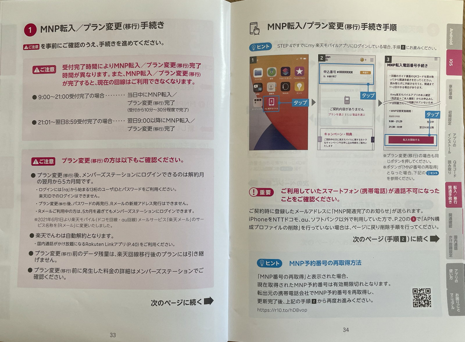 둘다 라쿠텐 모바일을 쓰는 건 다소 리스키하다고 생각되어 사모님 번호만 라쿠텐으로 진행하기로 했다.