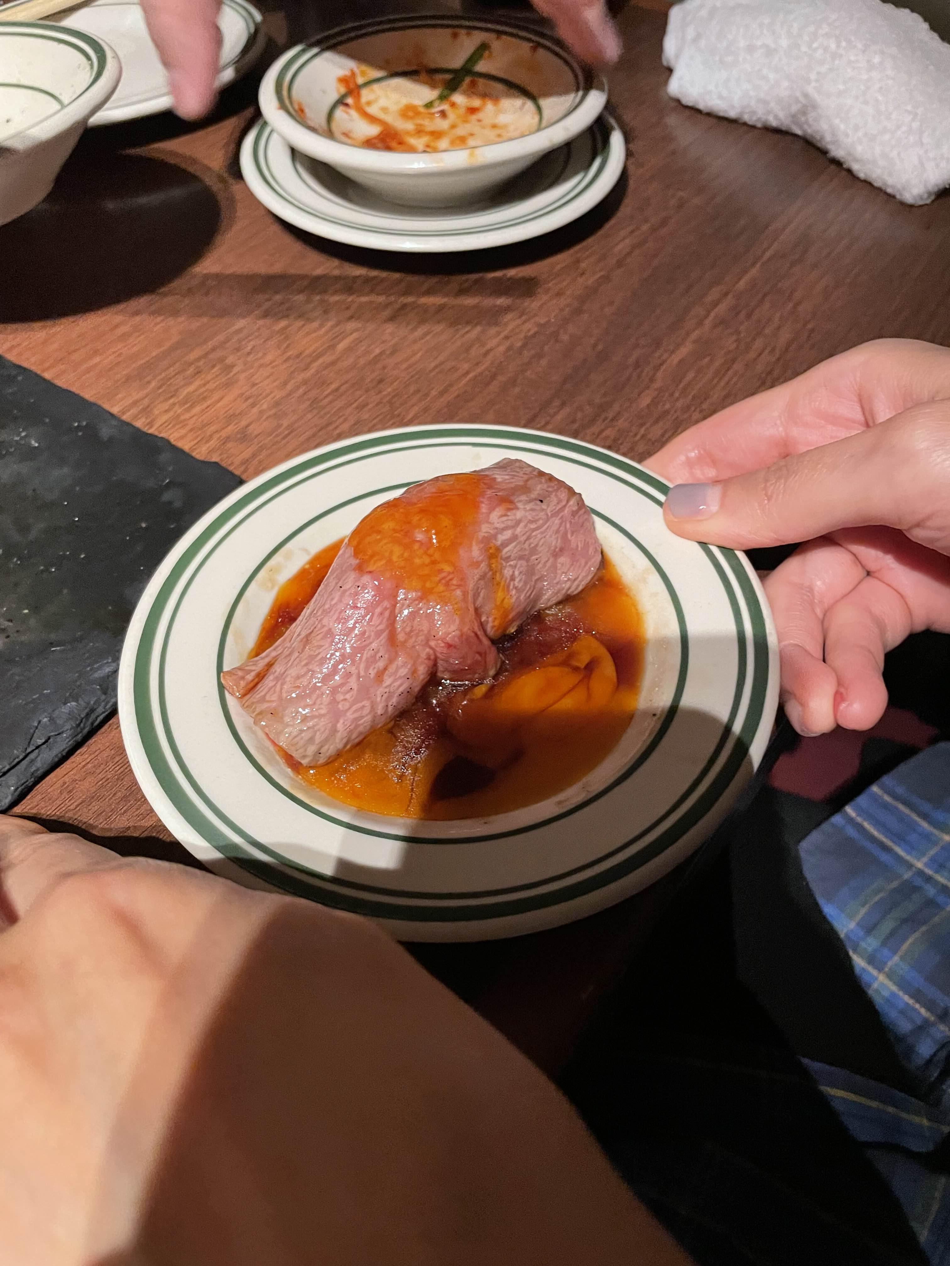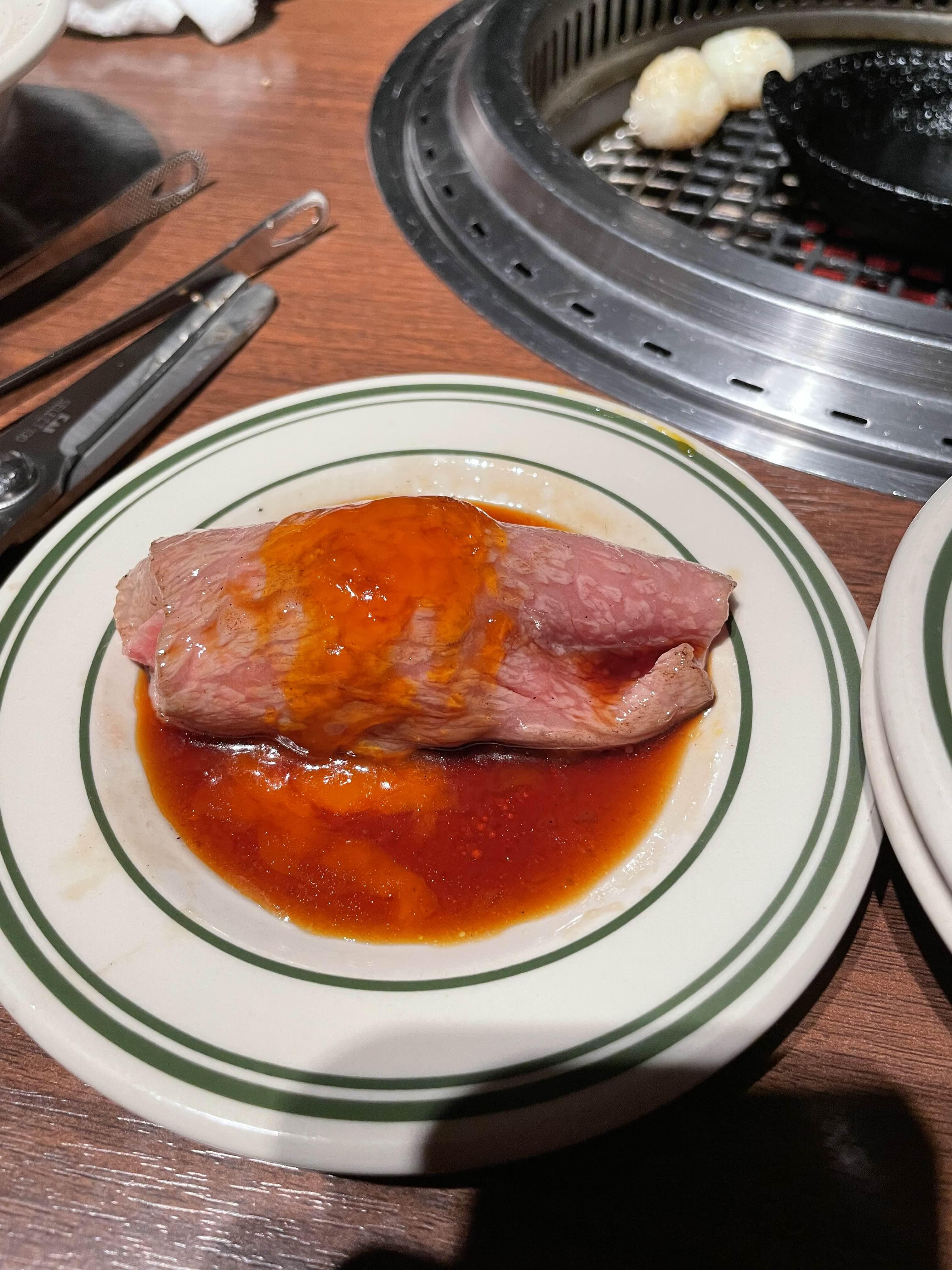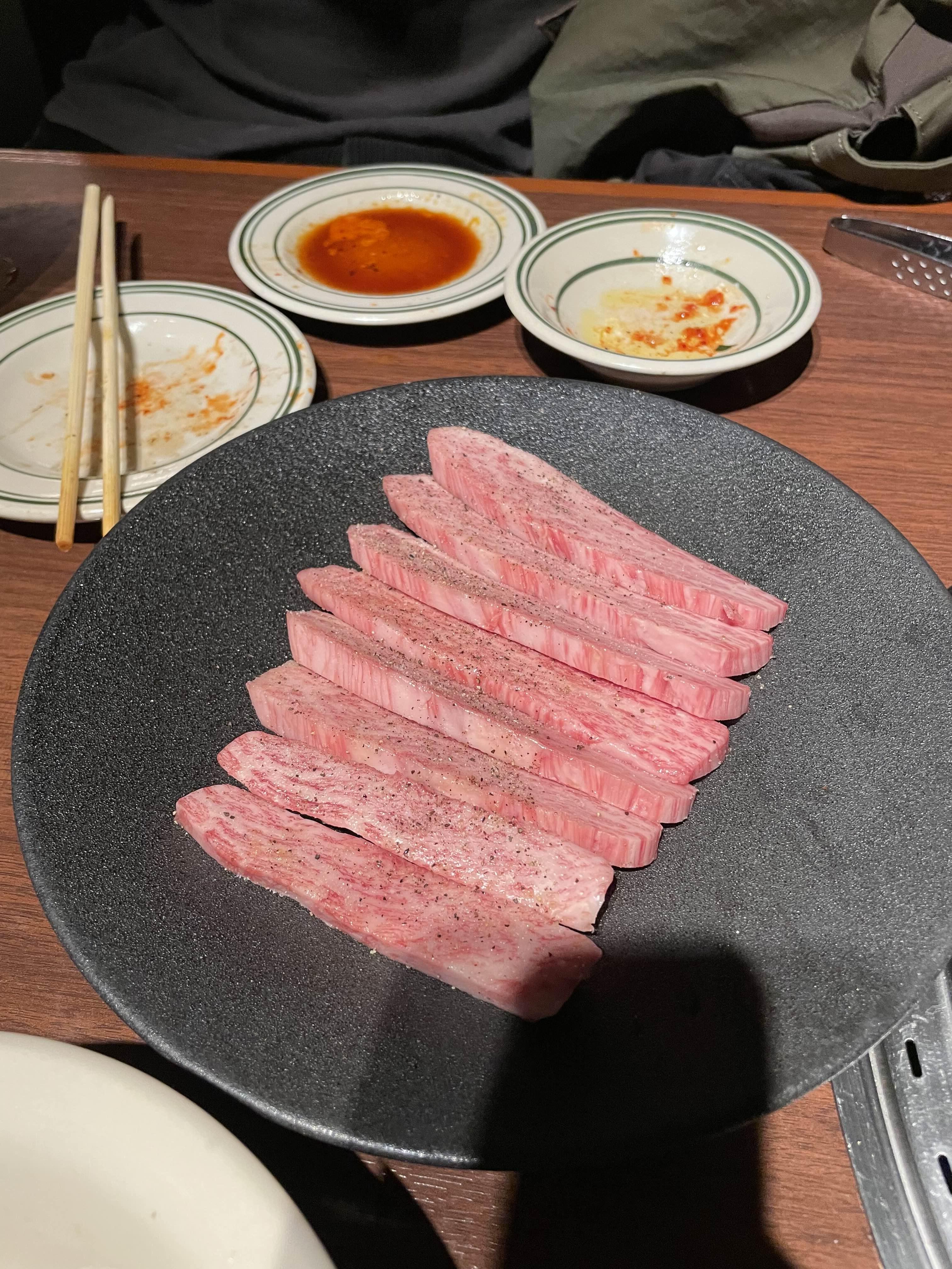 일본 야키니쿠의 특징은 이렇게 한점씩 잘 슬라이스되어서 먹는 양이 인당 정해진 느낌..