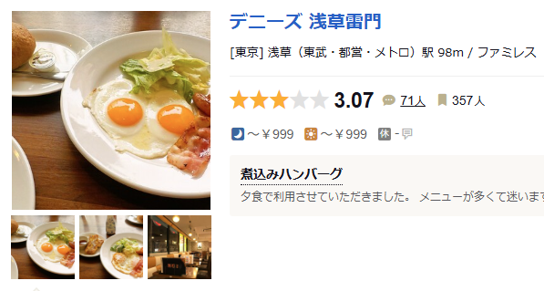 デニーズ 浅草雷門 (浅草(東武・都営・メトロ)/ファミレス)