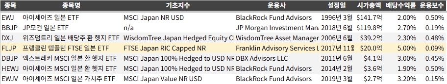 그럼 수수료 싼 FLJP가 가장 매력적으로 보인다