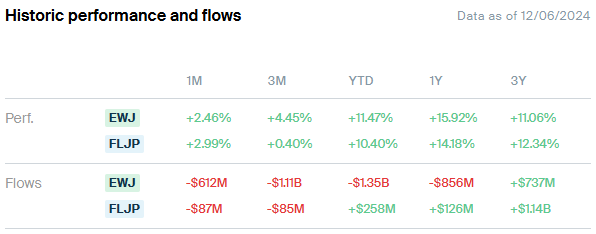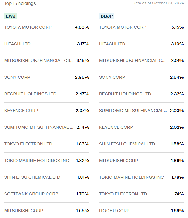 ETF comparison analysis of EWJ and BBJP on performance, AuM, flows, costs, holdings, and liquidity