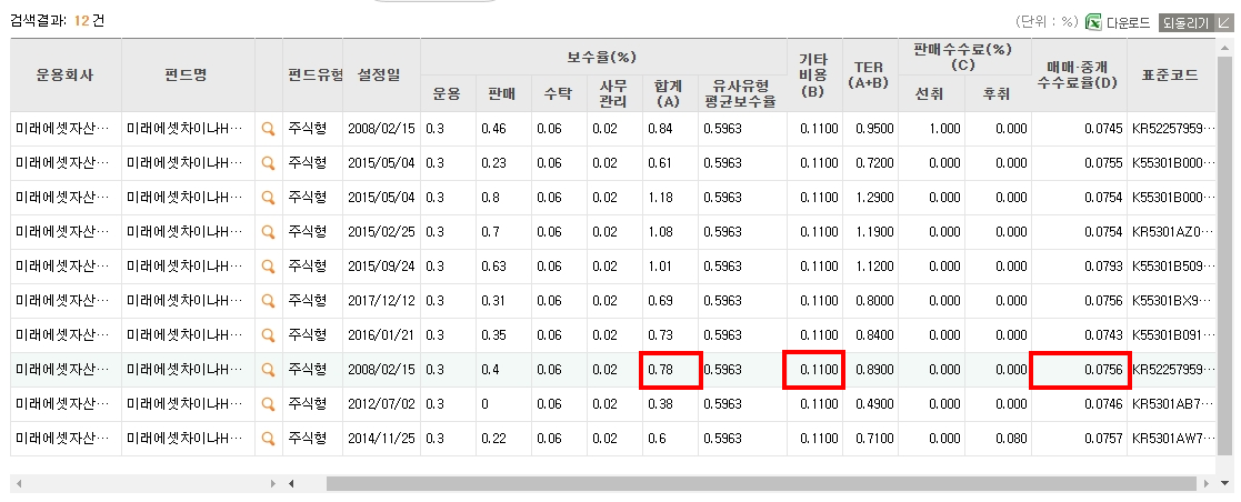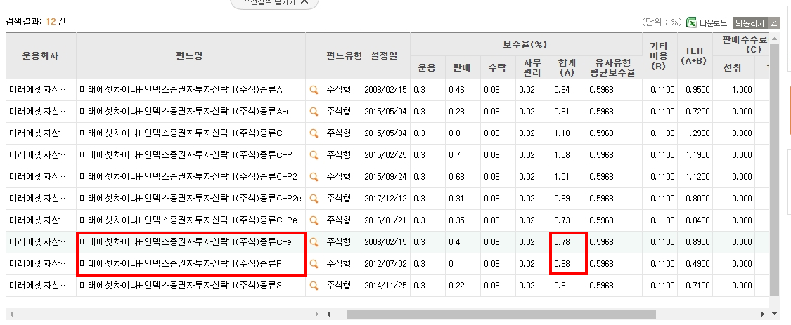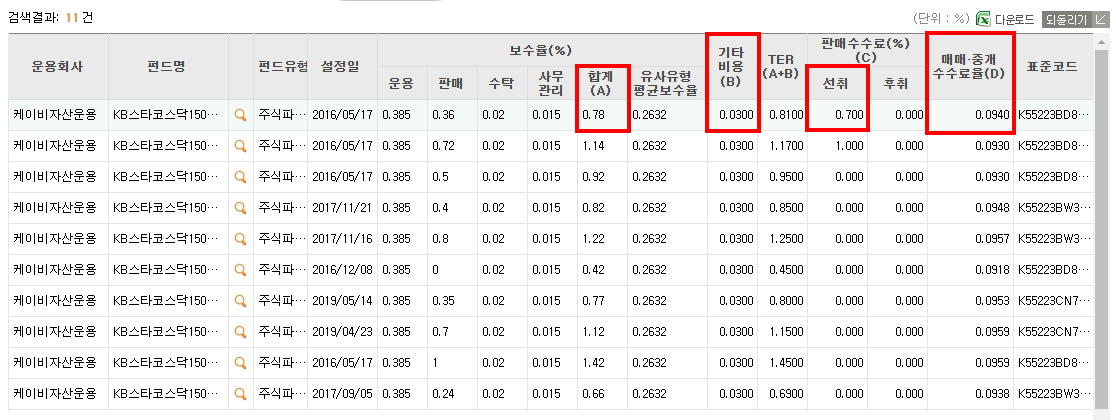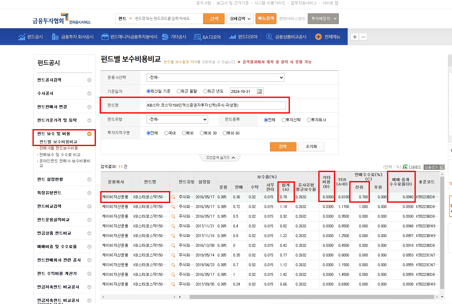 일단 펀드공시에서 펀드 보수 및 비용으로 가서