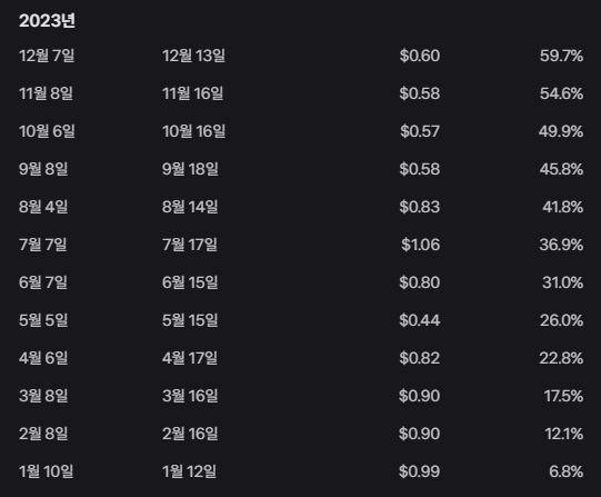 2024년 11월까지의 배당 내역을 보면 83%.. ㅎ ㄷ ㄷ