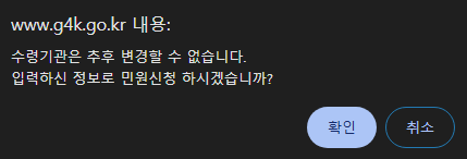 수령 기관은 변경 불가