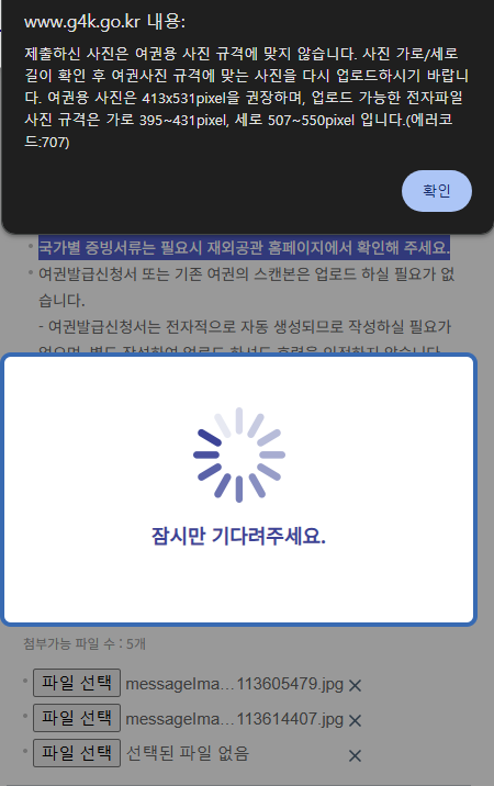 - 여권 사진은 규격에 맞는 JPG 또는 JPEG 파일(500KB 이하)로 준비합니다