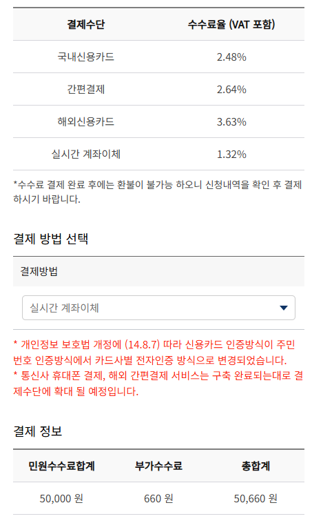 후 결국 카드로 진행해서 수수료는 1,240원...