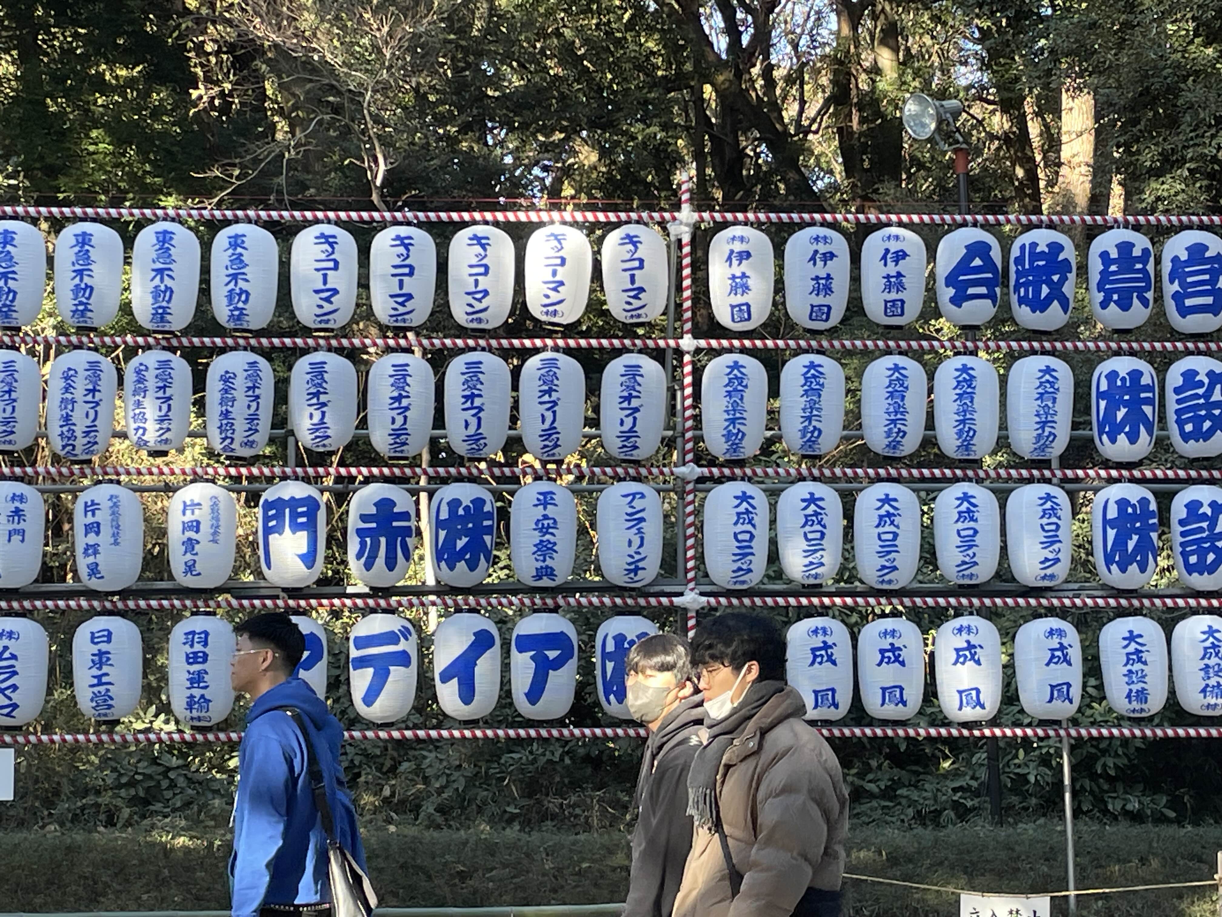 사진에 보이는 것은 메이지 신궁 같은 신사에 기업이나 단체가 번영을 기원하며 봉납한 '헌등(献灯, 켄토)'입니다.