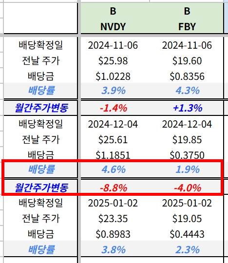 그리고 NVDY가 들어올 25년 1월 배당