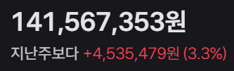 현재시점 원화 기준으로는 1.4억을 넣어서 +150만원 정도를 기록하고 있다